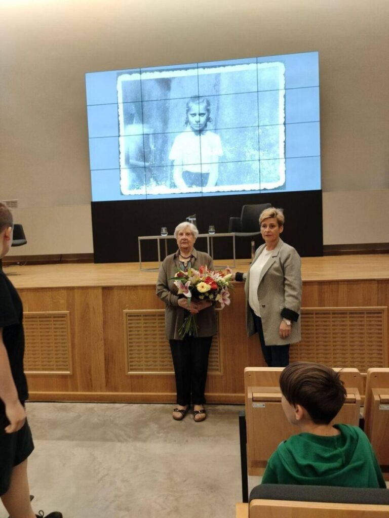 Edukacyjną prelekcję historyczną, w której uczestniczyli uczniowie SP 1, uzupełniał wykład dr Wandy Malickiej-Witek na temat losu dzieci deportowanych z powstania warszawskiego do KL Auschwitz.