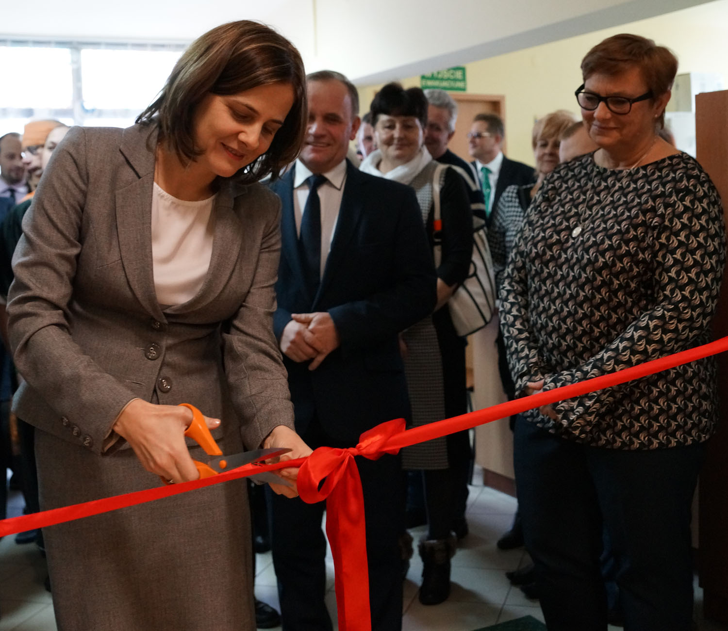 Symbolicznego przecięcia wstęgi dokonali wicestarosta Antoni Koszyk, powiatowy radny Stanisław Sułkowski, sekretarz gminy uzdrowiskowej Muszyna Katarzyna Rymarczyk-Wajda oraz były powiatowy radny Adam Mazur, który wspierał przed laty ideę uruchomienia w Muszynie ośrodka dla osób z zaburzeniami psychicznymi.