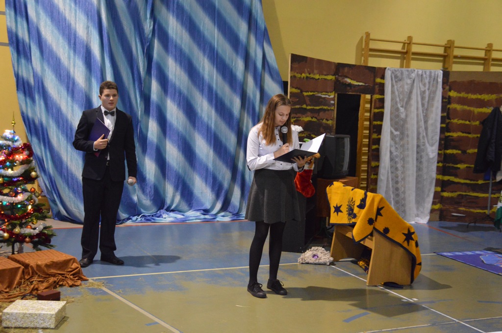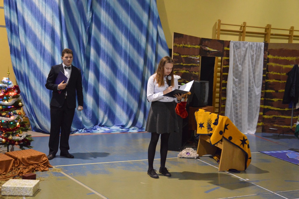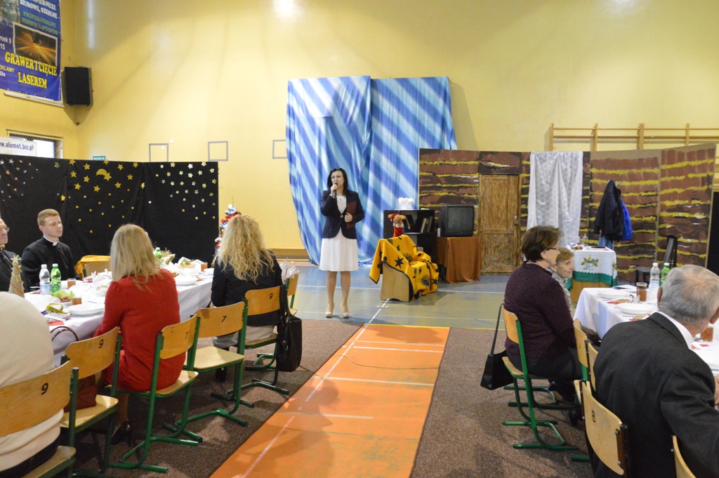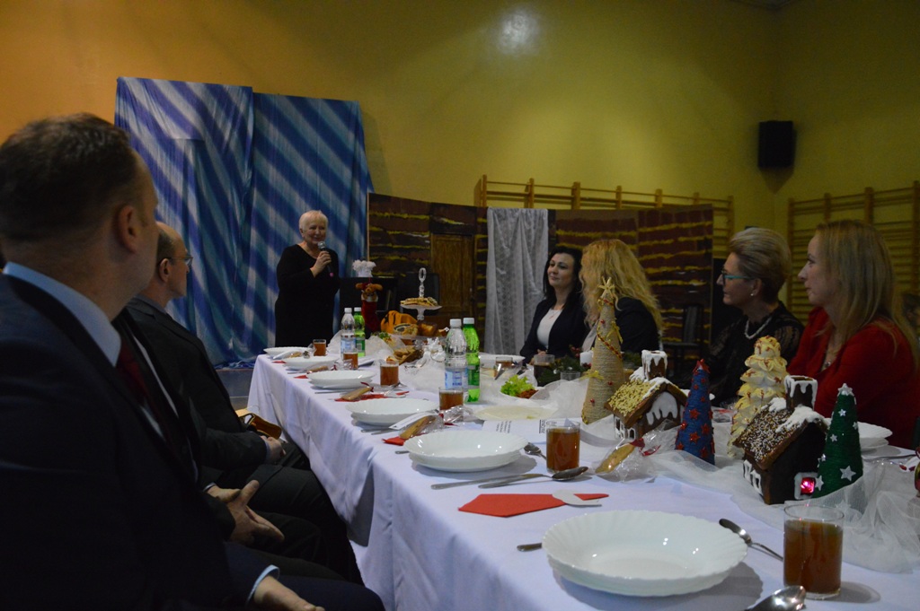 Dyrektor Wioletta Nowak serdecznie przywitała przybyłych gości. Spotkanie rozpoczął krótki montaż przygotowany przez uczniów „Dwójki”.Na zakończenie popłynęły życzenia, aby te nadchodzące Święta Bożego Narodzenia przyniosły wszystkim wiele radosnych szczęśliwych dni, oraz były doskonałą okazją do spędzania wspaniałych chwil w gronie najbliższych.
