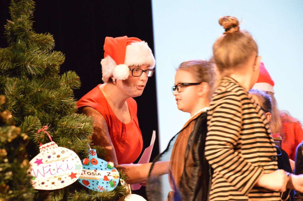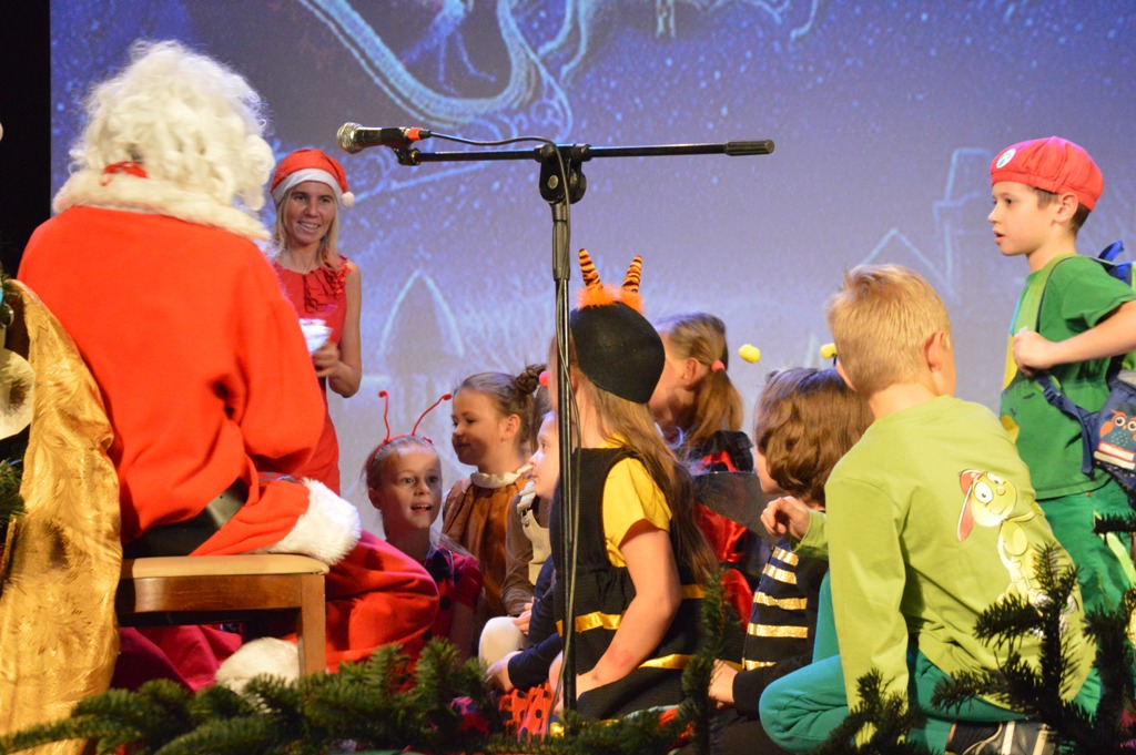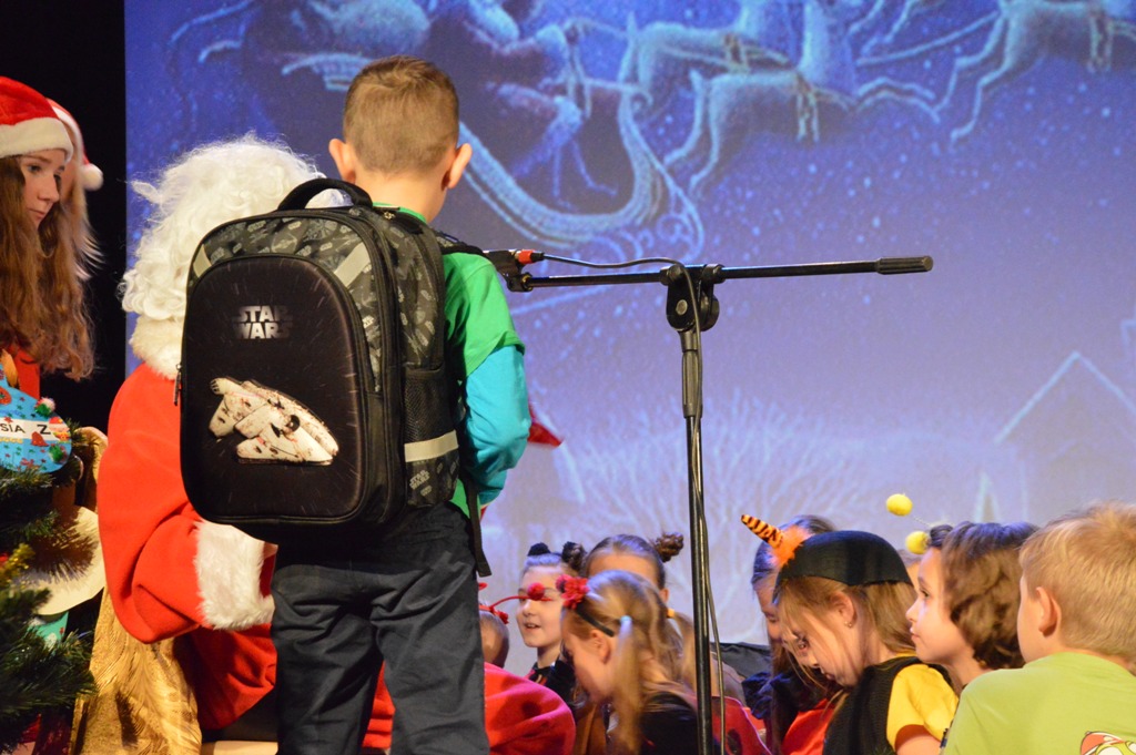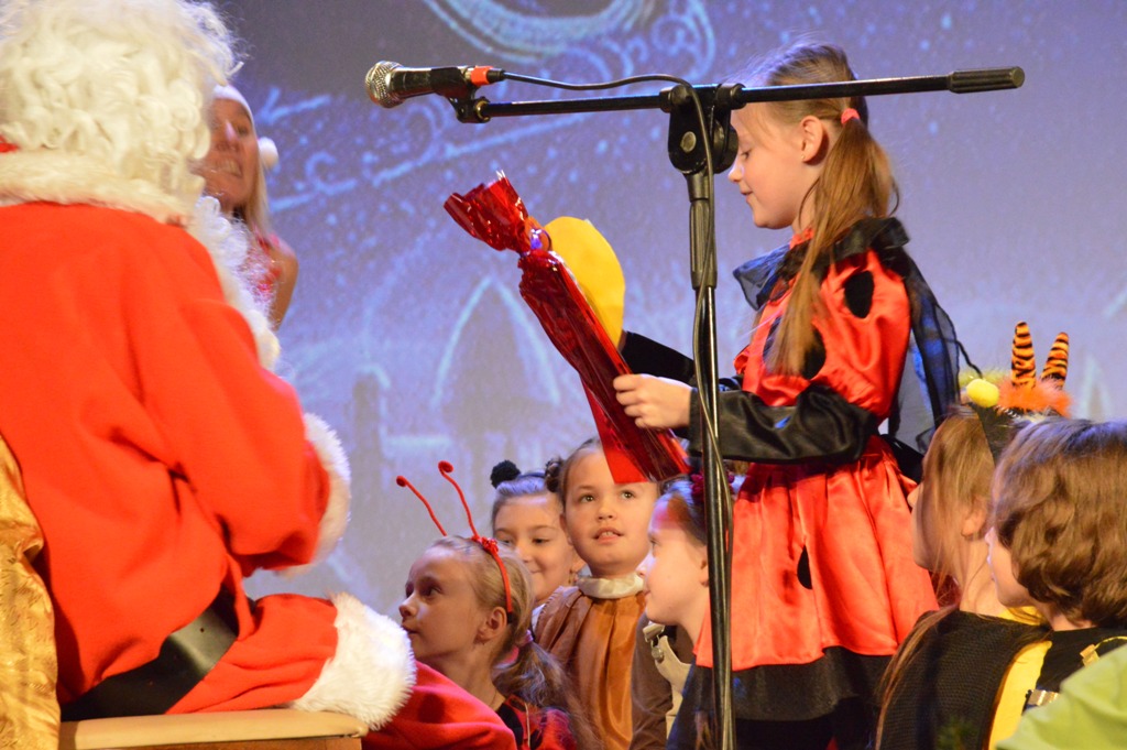 Gdy na scenie rozbrzmiały słowa Santa Claus is coming to town, pierwszoklasiści usłyszeli dźwięki dzwoneczka Mikołaja, co oznaczało, iż za chwilę pojawi się na scenie z ogromnym workiem prezentów-niespodzianek dla każdego aktora, debiutującego tego wieczoru na scenie w inscenizacji w całości w języku angielskim.