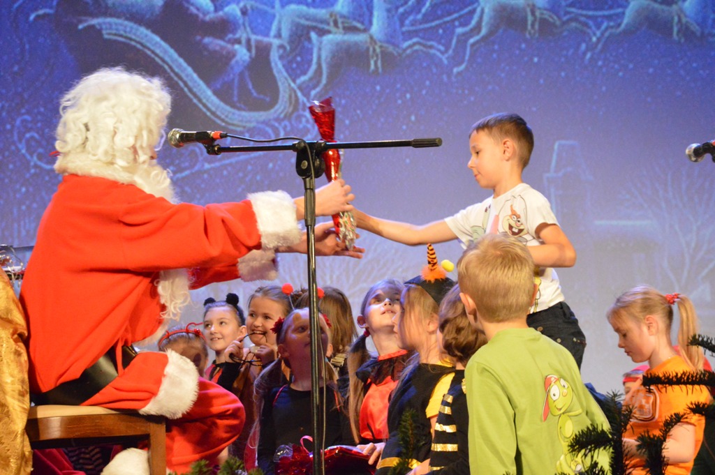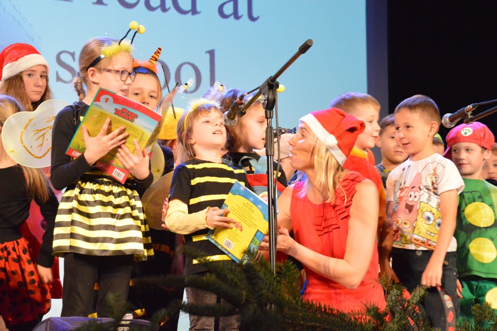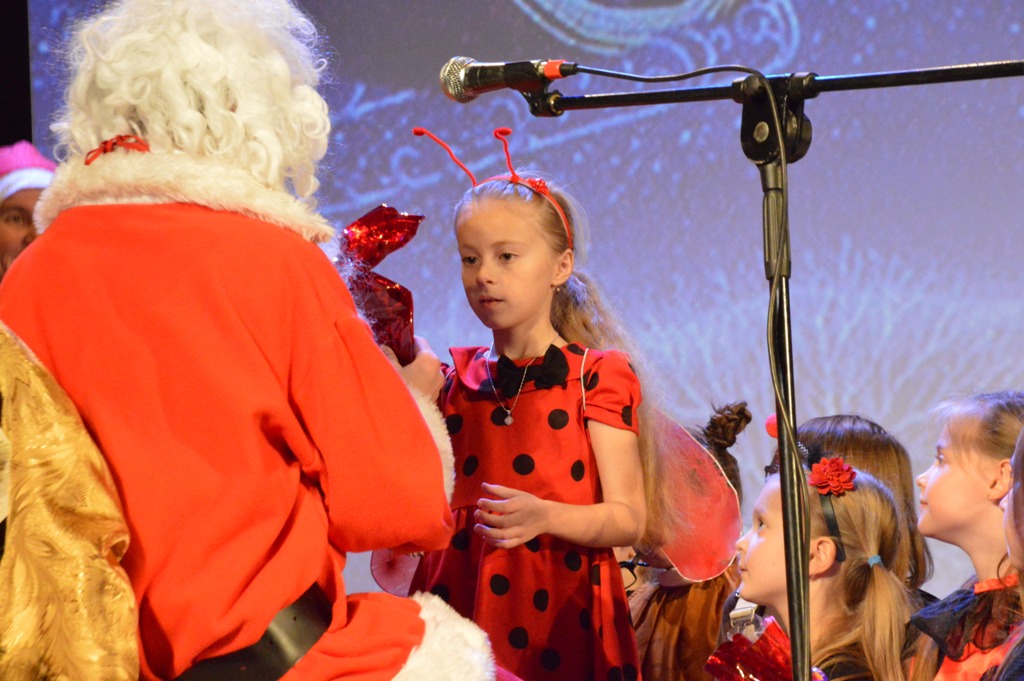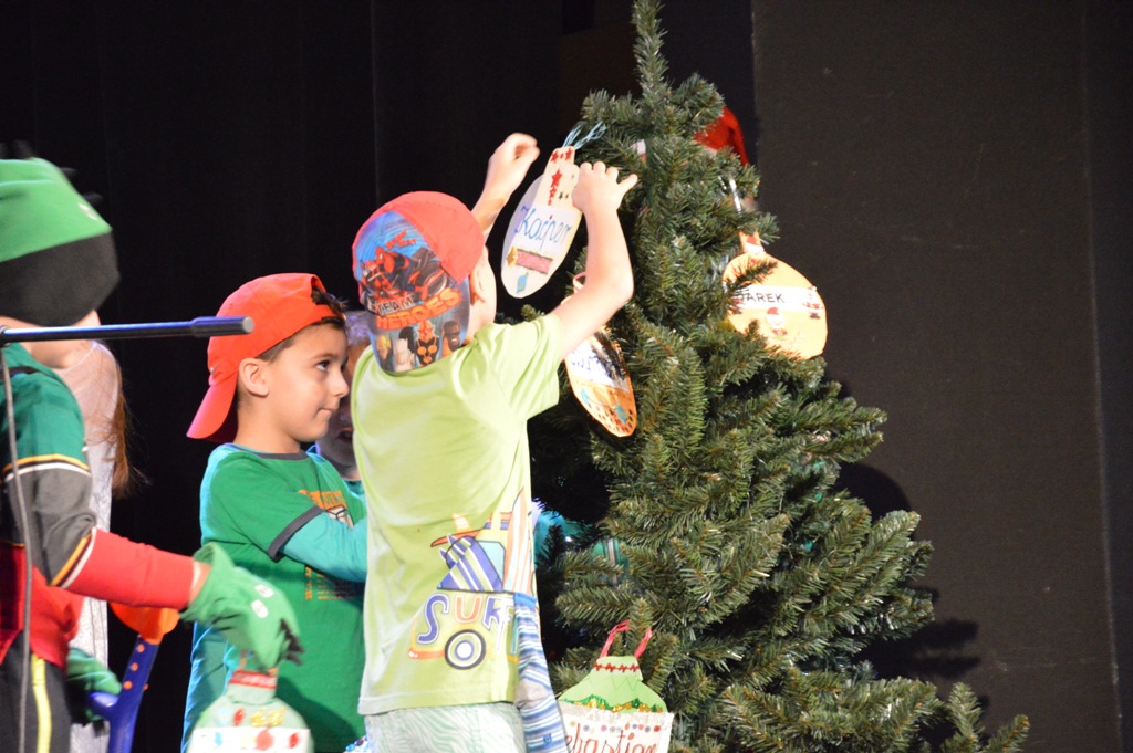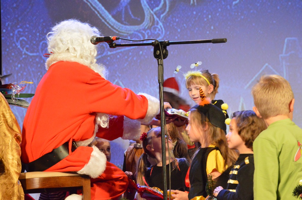 Gdy na scenie rozbrzmiały słowa Santa Claus is coming to town, pierwszoklasiści usłyszeli dźwięki dzwoneczka Mikołaja, co oznaczało, iż za chwilę pojawi się na scenie z ogromnym workiem prezentów-niespodzianek dla każdego aktora, debiutującego tego wieczoru na scenie w inscenizacji w całości w języku angielskim.