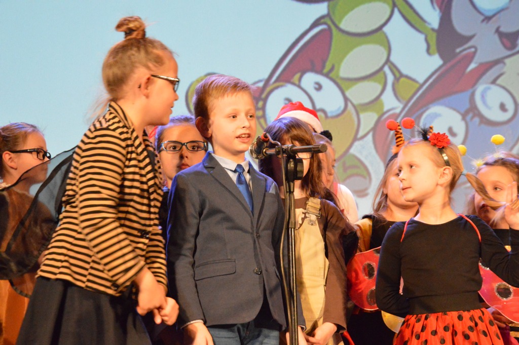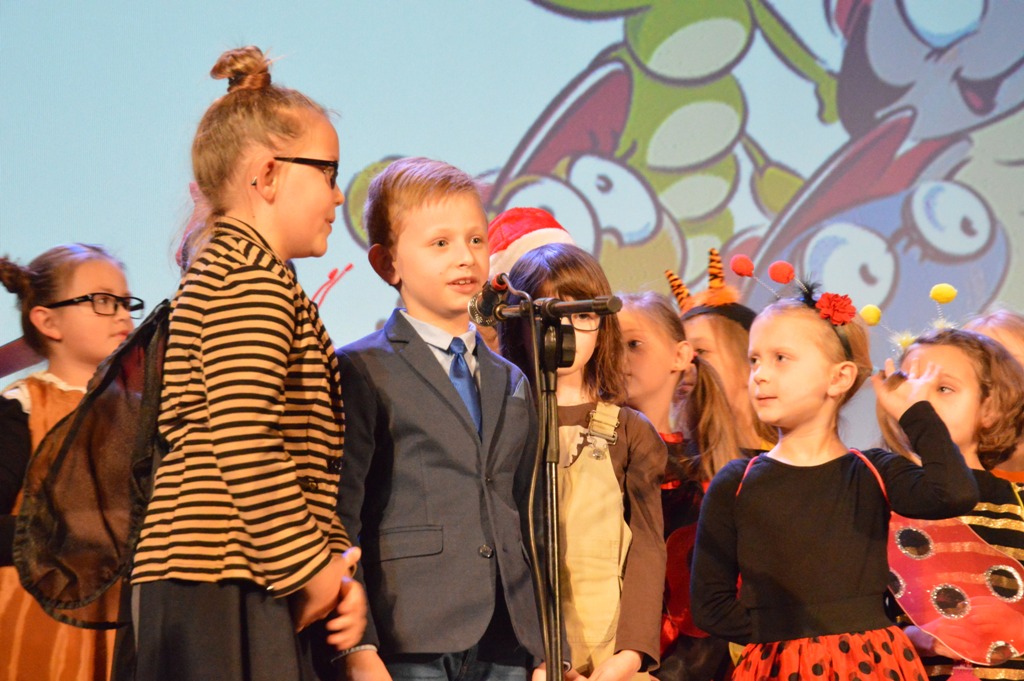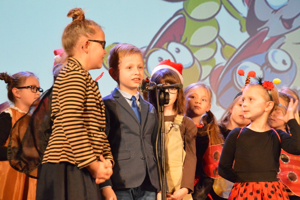 Przed rodzicami, dziadkami i babciami, a także rodzeństwem i krewnymi wystąpiła Drużyna Robaczków, czyli Bugs Team, która w inscenizacji Winter Wonderland, zaprezentowała znane z lekcji piosenki i rymowanki w języku angielskim. Autorski scenariusz był przygotowany w taki sposób, aby każde z 36 uczniów obecnych w kinie Sokół powiedziało na prawdziwej scenie przynajmniej jedno zdanie w języku angielskim. Z pewnością dla każdego pierwszoklasisty występ na scenie w przedstawieniu w języku obcym po tylko trzech miesiącach nauki tego języka w szkole podstawowej był dowodem odwagi i ogromnym przeżyciem.