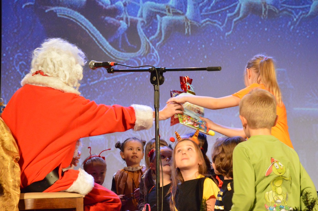 Spotkanie z Mikołajem połączone z występem w wykonaniu pierwszoklasistów w języku angielskim w kinie Sokół to kolejny etap realizacji autorskiego projektu „Nauka języków obcych- naprawdę warto”, w który włączone zostały wszystkie dzieci z klasy 1a i 1b w Szkole Podstawowej nr 2 im. Juliusza Słowackiego w Starym Sączu.