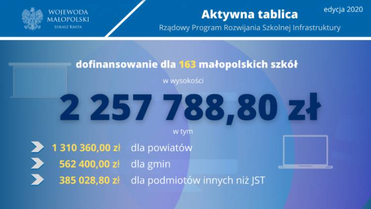 Wojewoda Małopolski zatwierdził listę placówek, które otrzymają dofinansowanie z programu „Aktywna Tablica”