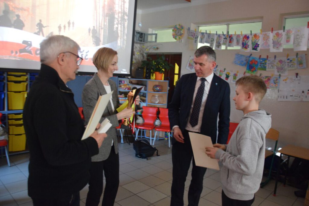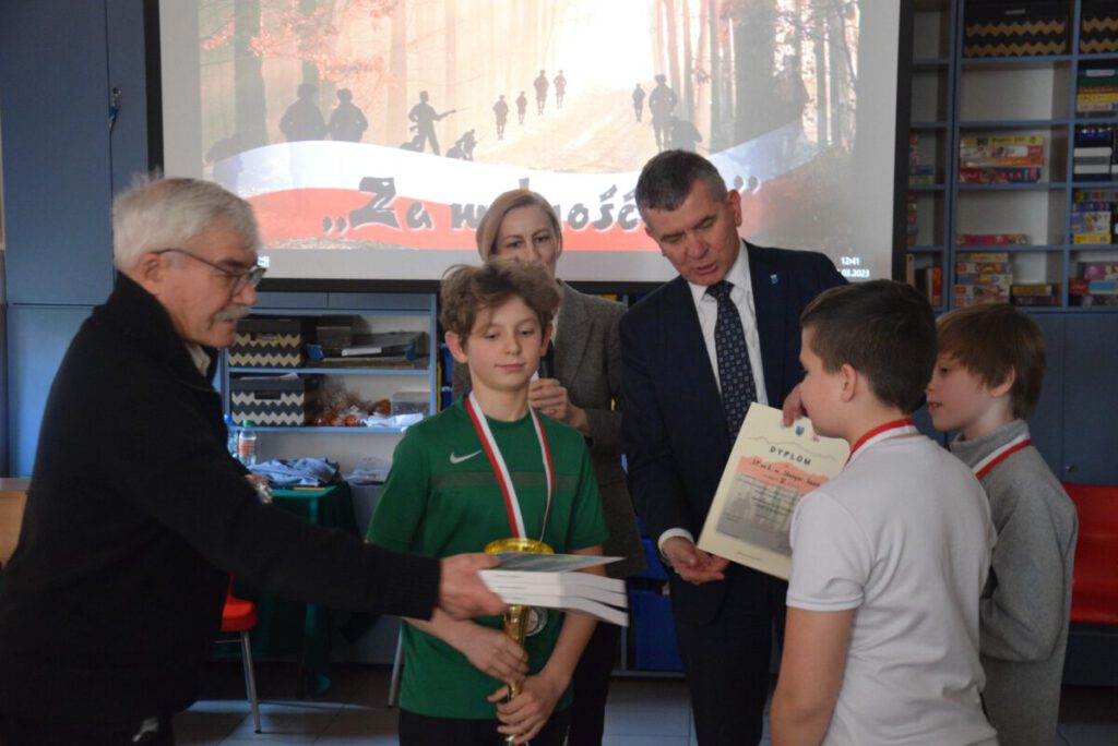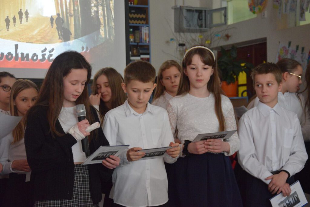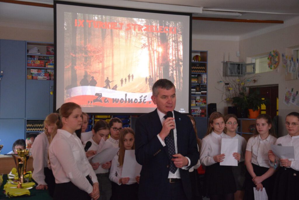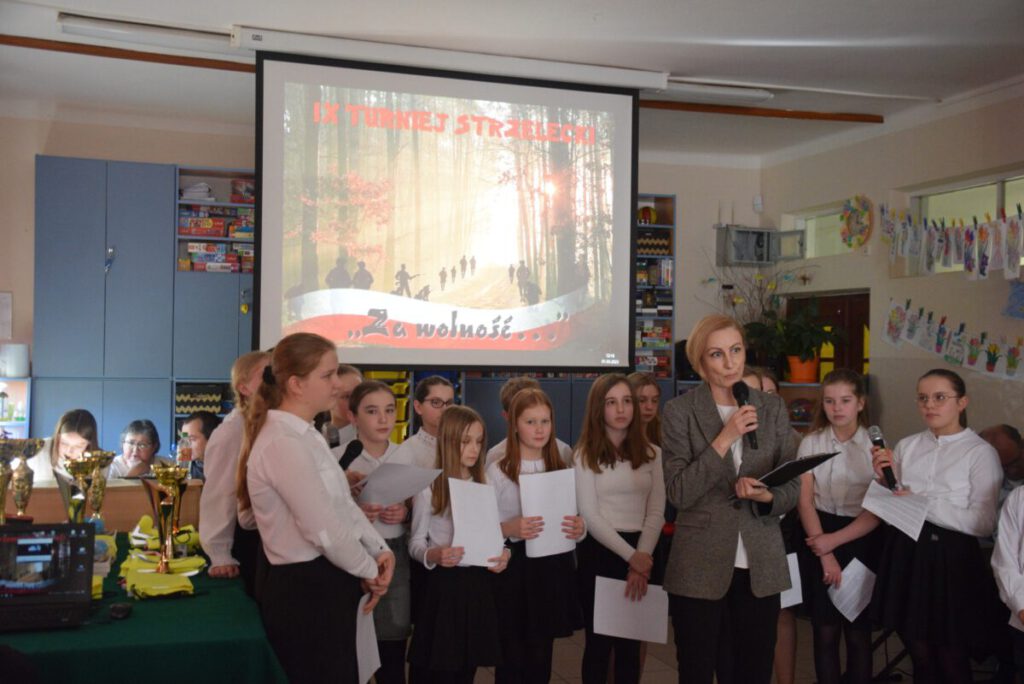 Po zmaganiach strzeleckich i sportowych zebrani w świetlicy szkolnej uczniowie i ich opiekunowie obejrzeli montaż słowno – muzyczny związany z obchodzonym w dniu 1 marca Narodowym Dniu Pamięci „Żołnierzy Wyklętych”. Oprawę muzyczną imprezy zapewnił kierowany przez Marka Kanika chór, który został nagrodzony gromkimi brawami.