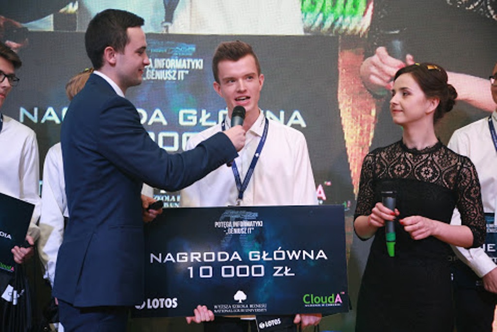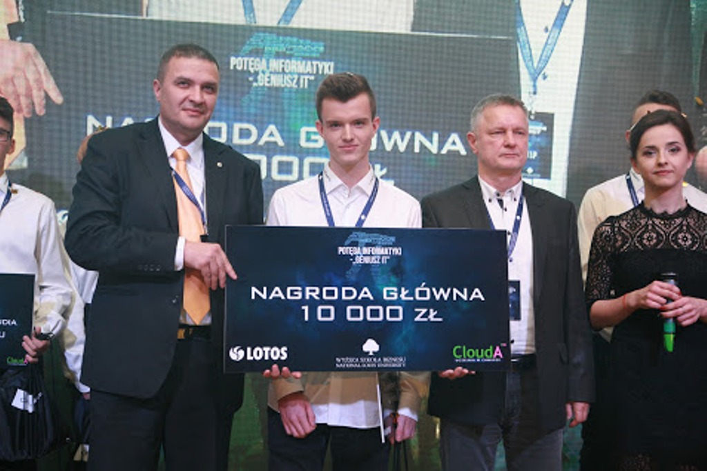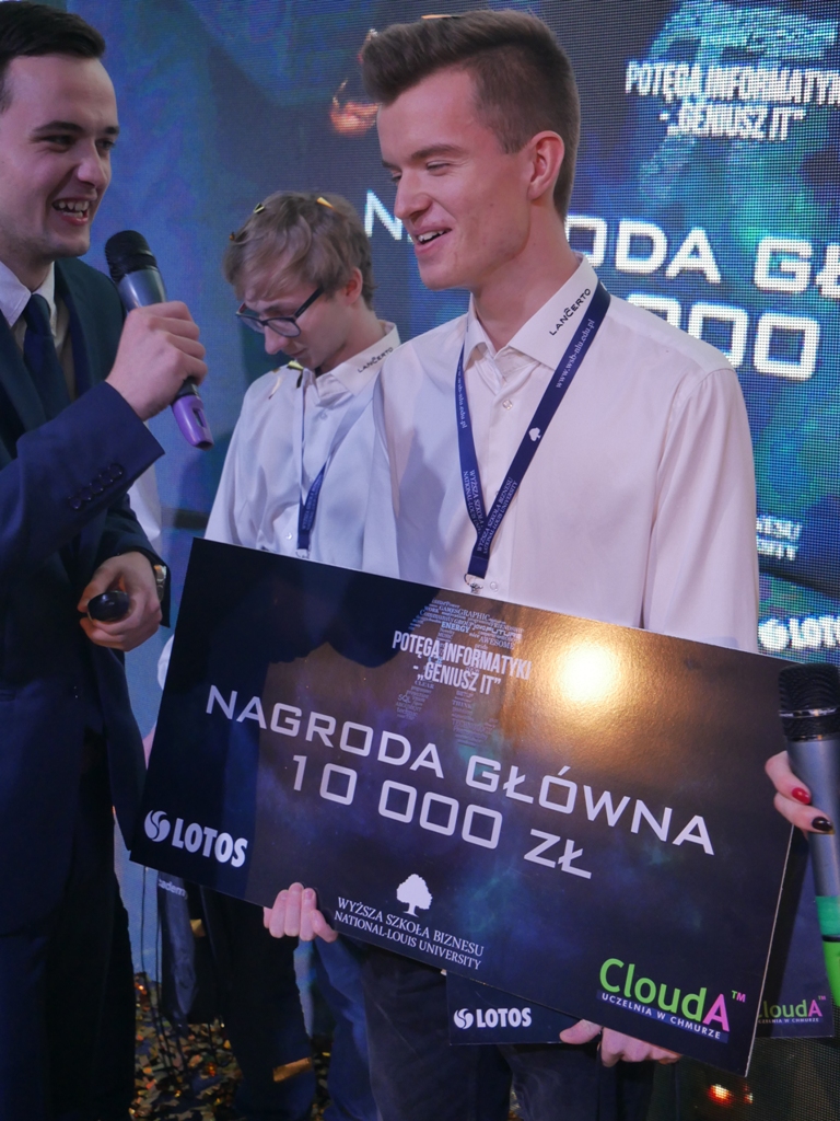 Oprócz nagrody głównej, tegoroczny Geniusz IT, odebrał także voucher na bezpłatne studia w WSB-NLU w Nowym Sączu na kierunku Informatyka oraz zaproszenie na wizytę studyjną w Microsoft Polska, gdzie będzie miał zapewniony mentoring technologiczny i biznesowy.