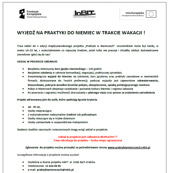 Wyjedź na praktyki do Niemiec w trakcie wakacji