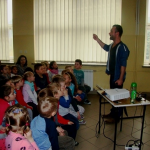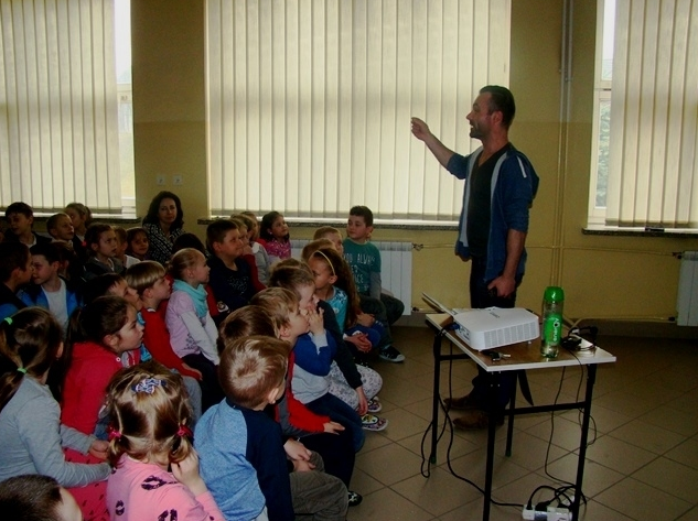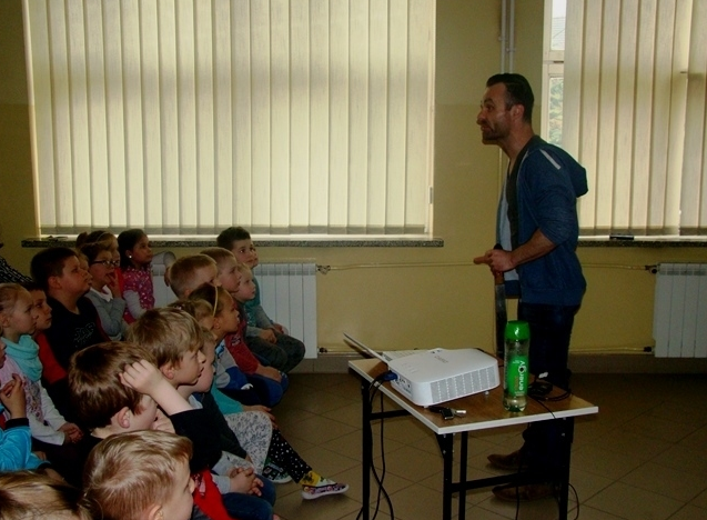 Z wielką pasją mówił o ekstremalnym pobycie w lesie amazońskim z dala od rozwiniętej cywilizacji w pobliżu natury – tropikalnych roślin i zwierząt. Z tego spotkania wszyscy zapamiętali wiele ciekawostek, np. domy „pływające”, osadzone na balach, że pogoda tam jest bardzo zmienna, a niezawodną pogodynką jest tukan, istnieją mrówki, których jad powoduje 24- godzinny ból. Słuchacze mogli również poznać świat plemienia Indian Desana Tujuka, w którym rządzi wódz, a zabawkami dzieci są węże. W trakcie spotkania uczniowie mieli możliwość odbycia wirtualnego rejsu po największej rzece świata oraz oglądania zdjęć, a także pamiątek i rekwizytów takich jak maczeta, nakrycie głowy, model piranii, które jeszcze bardziej przybliżyły tamtejszy klimat. Pan Samuel cały czas miał żywiołowy kontakt z uczniami, nagradzał słodyczami za prawidłowe odpowiedzi.