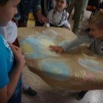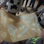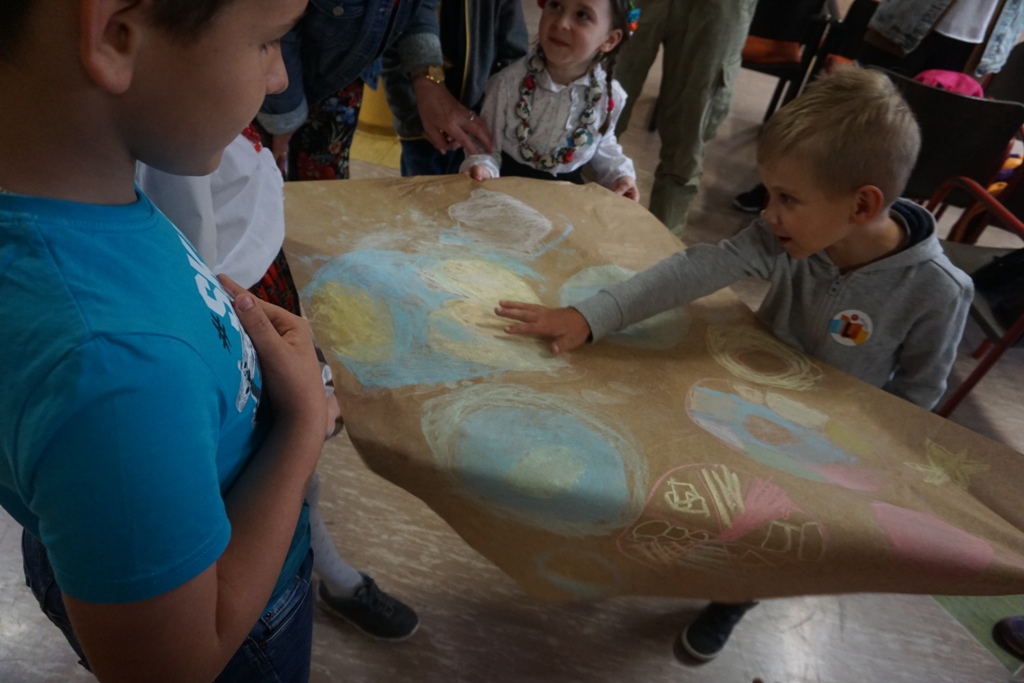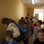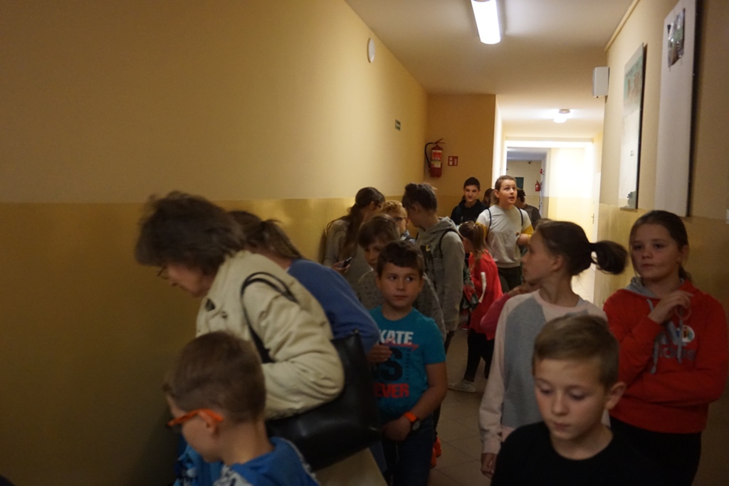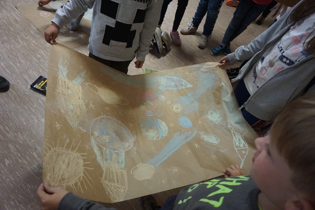 Pierwszą atrakcją było wspólne czytanie „Wielkiej księgi ciemności”, a następnie malowanie kredą na arkuszach papieru własnej wizji kosmosu. Powstało kilkanaście bardzo pomysłowych plakatów, które wyeksponowano w formie wystawy na holu szkoły. Kolejna atrakcja to podchody „Szukanie wspólnego języka”. Dwie drużyny miały za zadanie pokonanie wyznaczonej trasy, odnalezienie wskazówek, zrealizowanie zapisanych tam poleceń oraz odgadnięcie i ułożenie hasła. Trasę podchodów wyznaczały strzałki. Uczestnicy musieli zachować czujność i obserwować wszystko z uwagą. W innych nieoznakowanych miejscach rozmieszczone zostały tzw. bonusy czyli dodatkowe punkty, które warto było odnaleźć! Na trasie w kilku miejscach czekali strażnicy. Mogli zabrać drużynie punkty za np. głośne zachowanie. Drużyny spotkały się na szkolnym holu, gdzie złożyły sprawozdanie z realizacji zadań. Okazało się, że potrafili znaleźć wspólny język i dlatego podchody można uznać za bardzo atrakcyjne dla wszystkich. Nagrodą były słodycze. Następnie wszyscy usiedli i spokojnie zjedli posiłek. Później w małych grupkach czytano książki przysłane przez organizatorów akcji: Gorzka czekolada, Niezwykła historia Sebastiana Van Pirka, Wielka księga ciemności”, Ptyś i Bill: Psi nos (komiks). Na zakończenie spotkania wszyscy obejrzeli film „Ptyś i Bill’. Około godziny dwudziestej pierwszej po dzieci i młodzież przyjechali rodzice.