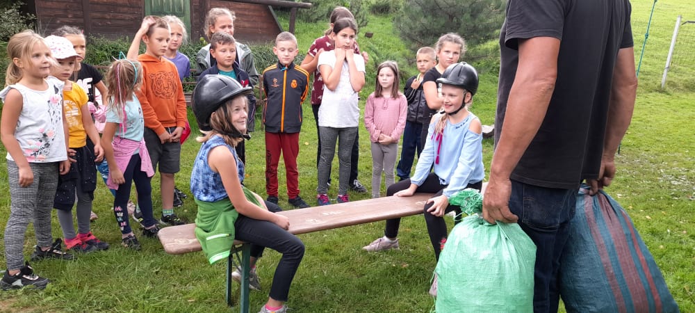 Emocjonującym wyjazdem dla uczestników półkolonii był wyjazd do Gospodarstwa Agroturystycznego „Gazdówka”. Jazda konna, wyrabianie masła, pieczenie kiełbasek, poznanie wiele gatunków zwierząt hodowlanych jak i zwyczajów życia na wsi to tylko niektóre z atrakcji przygotowanych przez gospodarzy.