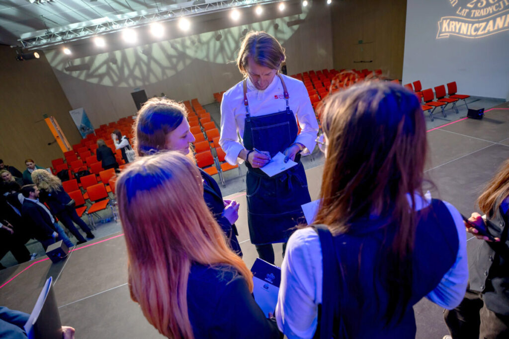 Uczniowie klas hotelarskich i gastronomicznych Zespołu Szkół Ponadpodstawowych im. Jana Pawła II w Krynicy-Zdroju uczestniczyli w Szkoleniu Kulinarnych Mistrzów z Karolem Okrasą, które odbyło się w Pijalni Głównej w Krynicy-Zdroju.