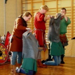 Prowadzona żywym, barwnym, „staropolskim” językiem gawęda była ilustrowana demonstracją strojów, zbroi i całego bogatego wyposażenia woja i rycerza. Zaproszeni do udziału uczniowie mieli okazję przekonać się osobiście, jak skomplikowany był rytuał zakładania i noszenia wszystkich elementów stroju oraz jak ciężko było poruszać się w pełnej zbroi a także jakiej wprawy i siły wymagało posługiwanie się bronią.