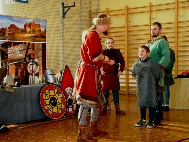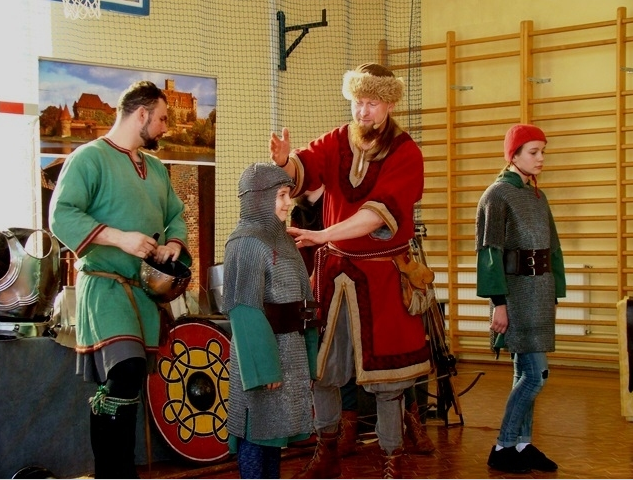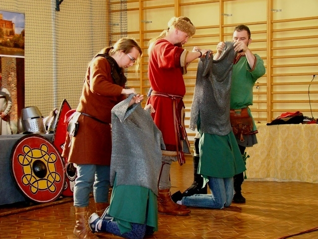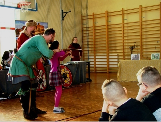 Prowadzona żywym, barwnym, „staropolskim” językiem gawęda była ilustrowana demonstracją strojów, zbroi i całego bogatego wyposażenia woja i rycerza. Zaproszeni do udziału uczniowie mieli okazję przekonać się osobiście, jak skomplikowany był rytuał zakładania i noszenia wszystkich elementów stroju oraz jak ciężko było poruszać się w pełnej zbroi a także jakiej wprawy i siły wymagało posługiwanie się bronią.