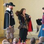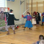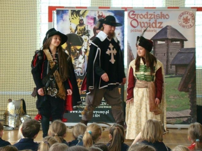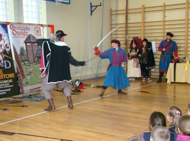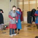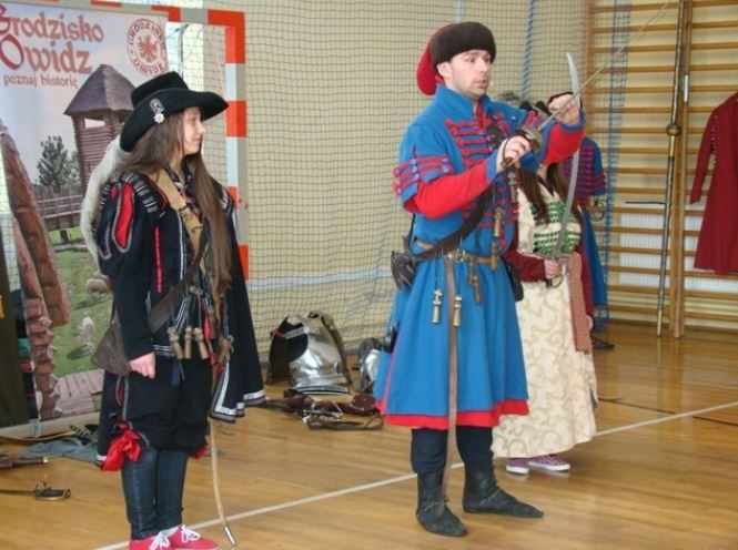 W lekcji brali udział uczniowie klas 4-6 szkoły podstawowej i 1 – 3 gimnazjum. Osoby prowadzące występowały w historycznych strojach, a ubiór z danej epoki wraz w elementami uzbrojenia i bronią prezentowały, na naszych kolegach i koleżankach.