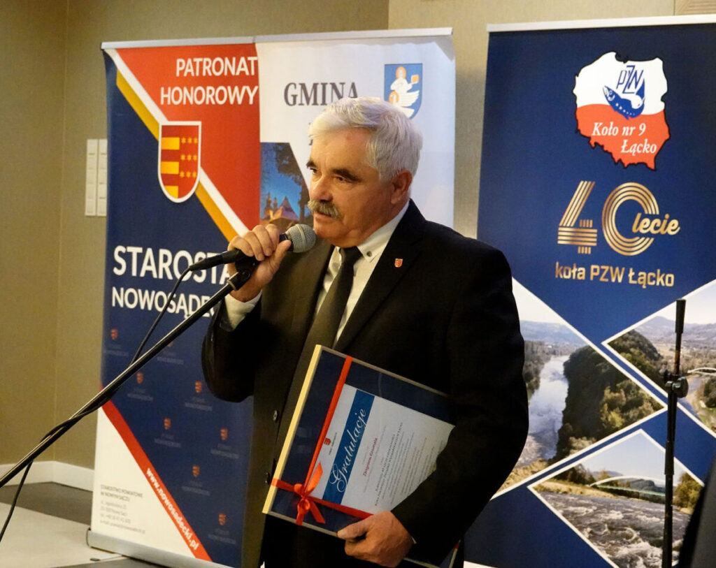– Z okazji Jubileuszu 40-lecia działalności Koła Polskiego Związku Wędkarskiego w Łącku składam na ręce Prezesa Zbigniewa Gromali wyrazy szacunku i podziękowania dla wszystkich członków i sympatyków Koła – mówił w imieniu starosty Tadeusz Zaremba członek Zarządu Powiatu Nowosądeckiego Franciszek Kantor. – Działalność wędkarzy mająca na celu ochronę przyrody i dbanie o akweny wodne na Ziemi Sądeckiej jest nie do przecenienia. Dodatkowo, zachęcacie dzieci i młodych ludzi do aktywnego spędzania czasu nad wodą, a przez udział w ogólnopolskich zawodach promujecie Sądecczyznę. Gratulując Jubileuszu 40-lecia istnienia, życzę wszystkim wędkarzom, aby każda wyprawa na ryby kończyła się wielkim połowem, żebyście zawsze mieli szczęście jak stary rybak i zdrowie silne jak jego sieci.