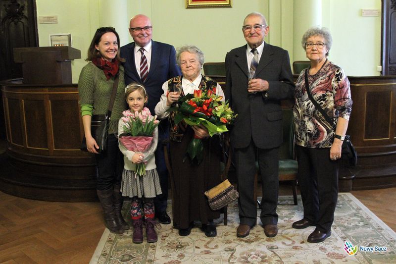– Z wielką przyjemnością mam zaszczyt powitać państwa w sądeckim ratuszu z okazji tak pięknego jubileuszu – powiedział na powitanie prezydent Ryszard Nowak. – Serdecznie gratuluję i jest mi niezmiernie miło wręczyć ten symboliczny bukiet kwiatów. 70 lat pożycia nazywane jest jubileuszem kamiennym i wasze małżeństwo to jest właśnie taka skała. To jest właśnie dar Boży, że państwo są razem na przekór wszystkim przeciwnościom i złym czasom – dodał prezydent.