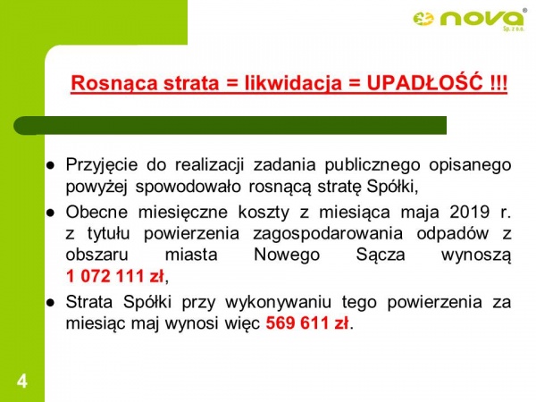 Prezes Krzysztof Krawczyk podkreślił, że bez wsparcia finansowego Rady Miasta, NOVA może zaprzestać odbierania odpadów od mieszkańców.