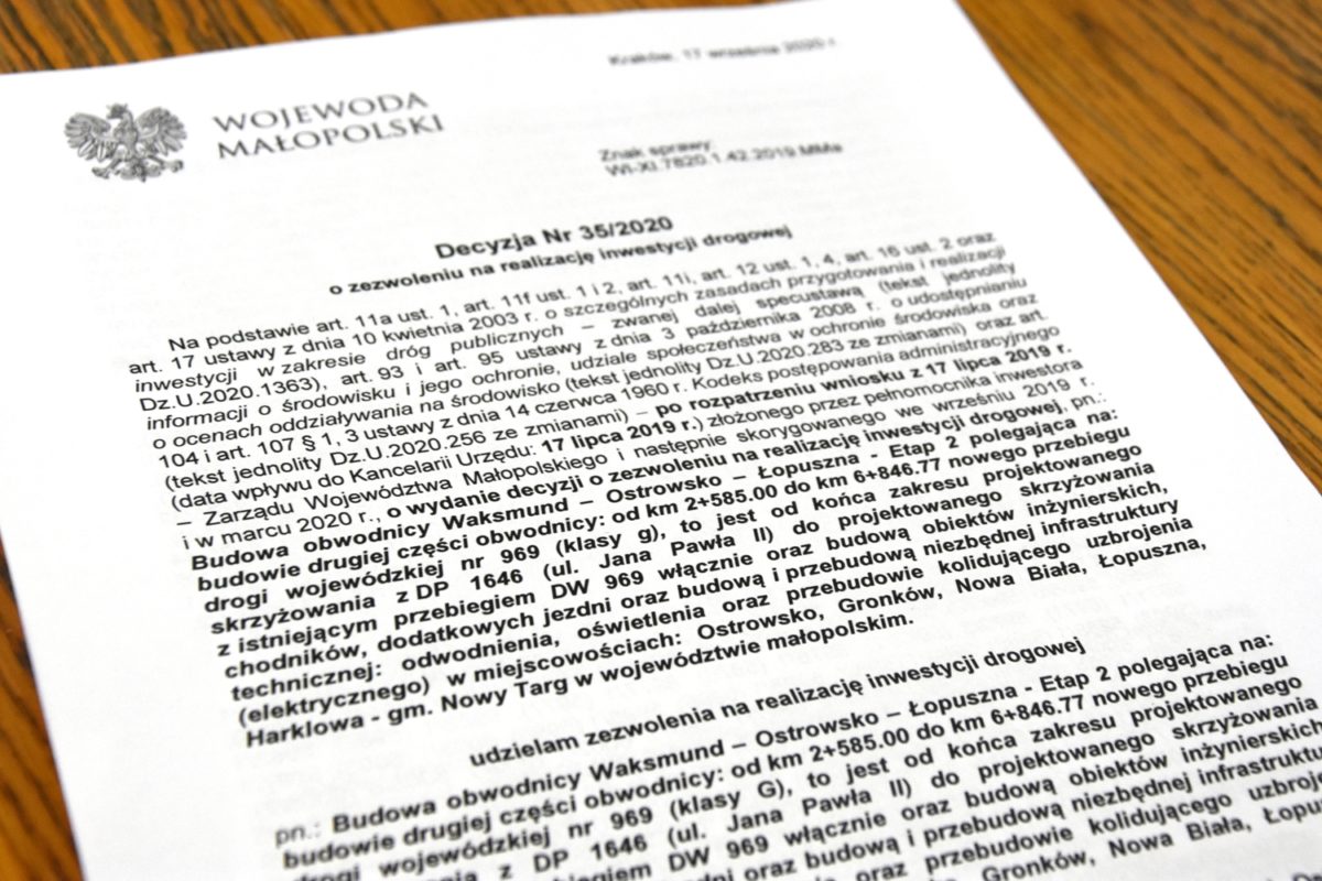 Kila dni temu Małopolski Urząd Wojewódzki wydał „zrid” (czyli decyzję o zezwoleniu na realizację inwestycji drogowej) na budowę obwodnic Podłęża i Niepołomic. Dziś znowu mamy do przekazania dobrą wiadomość dla mieszkańców Małopolski. Sieć dróg w naszym województwie wzbogaci się o kolejne, ważne dla regionu połączenie. 17 września – z upoważnienia Wojewody Małopolskiego – został wydany „zrid” na budowę drugiego etapu obwodnicy miejscowości Waksmund, Ostrowsko i Łopuszna w gminie Nowy Targ.