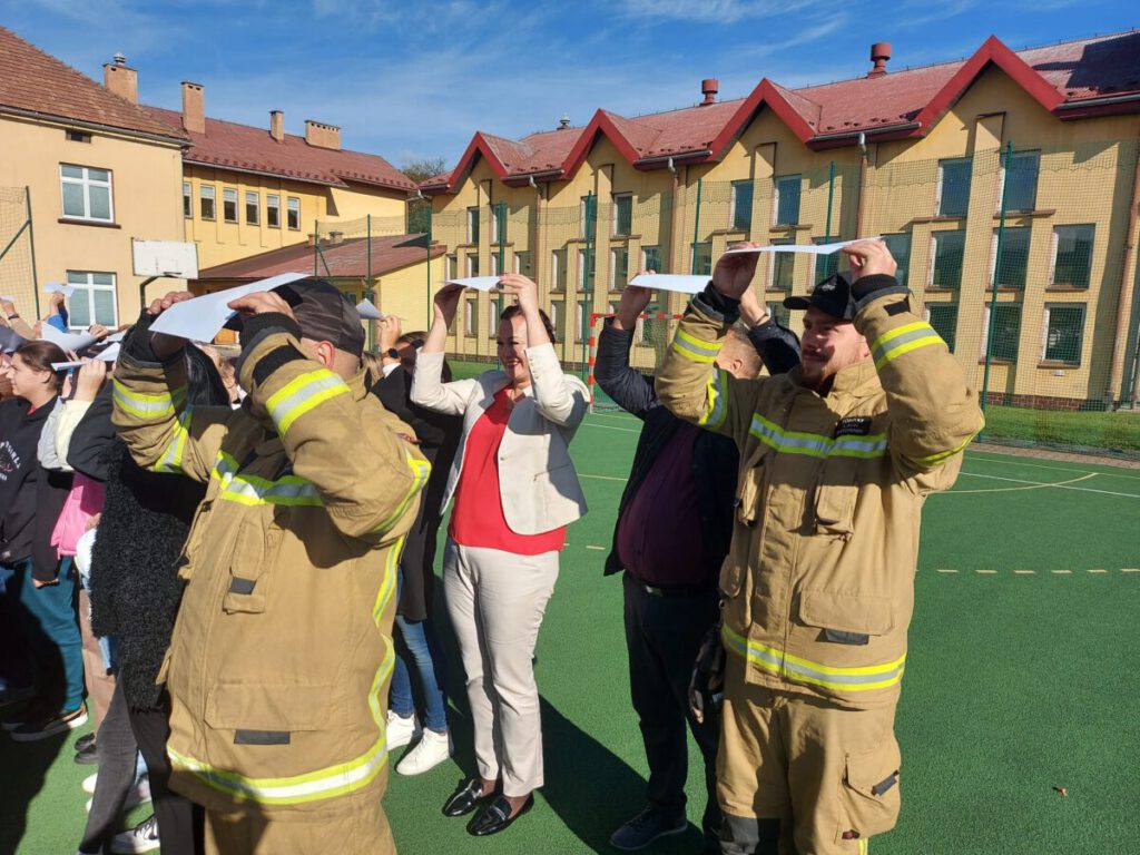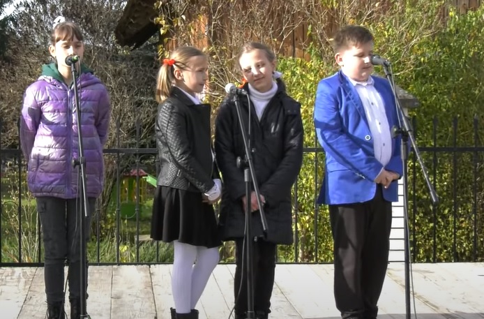 Pierwszym z nich było ułożenie ogromnej flagi Polski, która powstała z kilkuset kartek w formacie A4. W Łabowej, na boisku szkolnym, uczniowie, grono pedagogiczne, urzędnicy, strażacy, panie z KGW wszyscy wspólnie powiedzieli „Kolor mój to biało-czerwony” i unieśli w górę kartki białe i czerwone, żeby finalnie powstała ogromna flaga Polski.