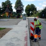 Starosta Marek Pławiak i wójt gminy Chełmiec Bernard Stawiarski sprawdzali postępy robót. Ich zakończenie przewidziane jest a 26 sierpnia, ale już teraz mieszkańcy mogą korzystać z wybudowanego chodnika.
