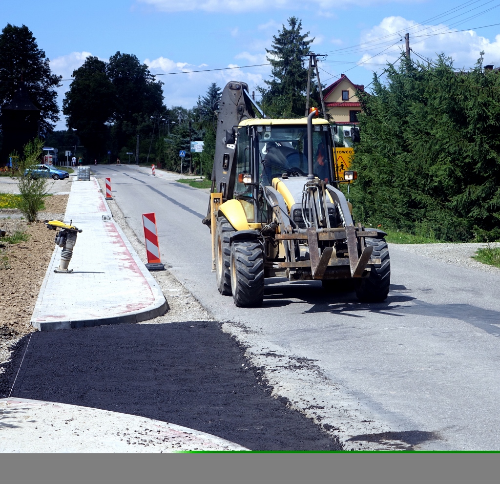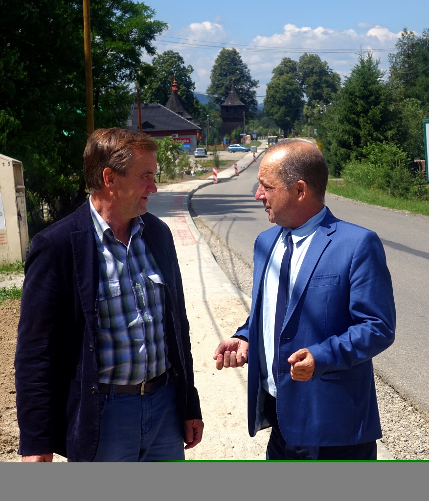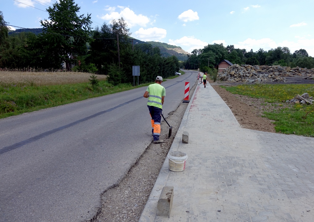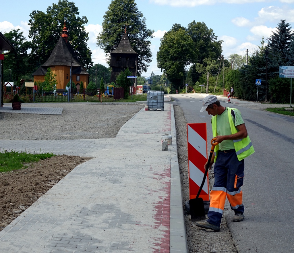 Starosta Marek Pławiak i wójt gminy Chełmiec Bernard Stawiarski sprawdzali postępy robót. Ich zakończenie przewidziane jest a 26 sierpnia, ale już teraz mieszkańcy mogą korzystać z wybudowanego chodnika.