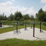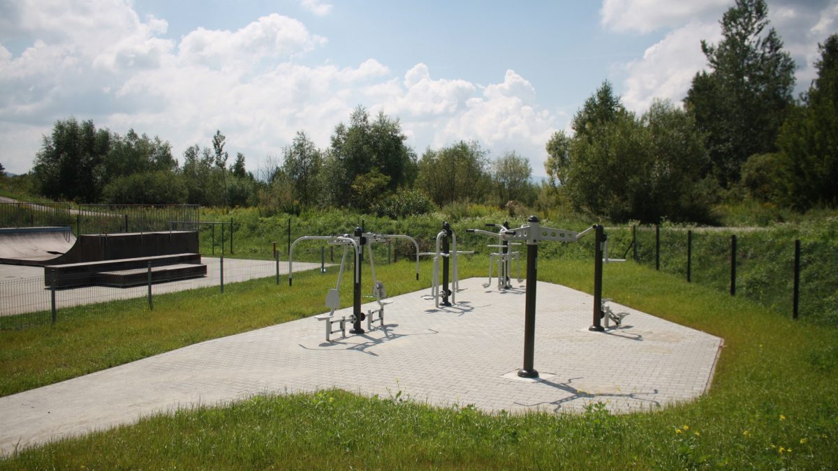 - zagospodarowano terenu wokół budynku poprzez budowę masztu informacyjnego, budowę siłowni zewnętrznej, parkingu, stojaku dla rowerów, oraz wybudowano ciągi pieszo-jezdne.