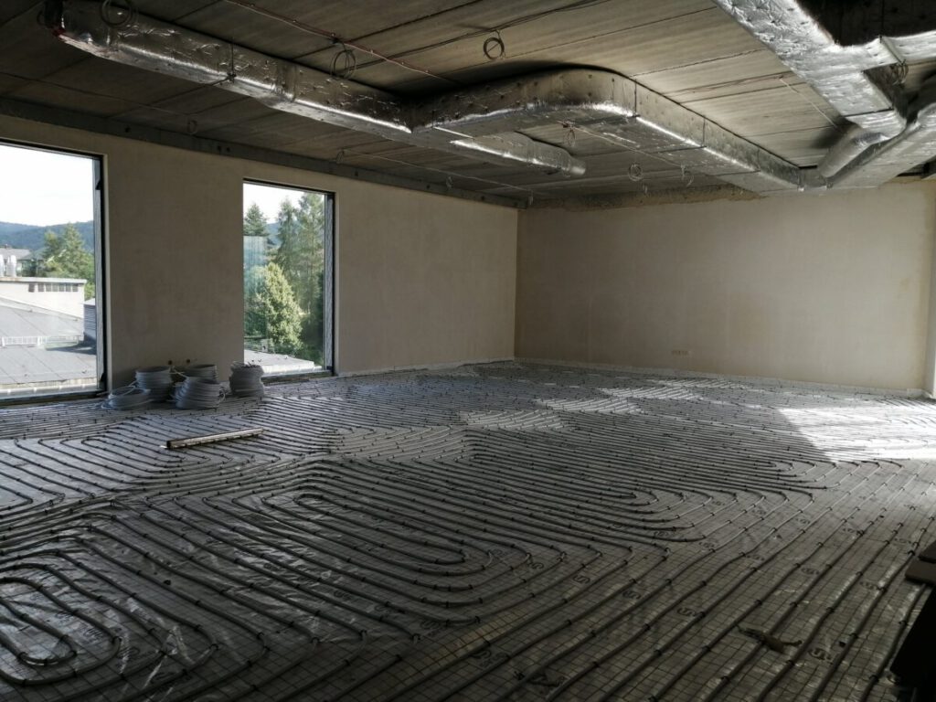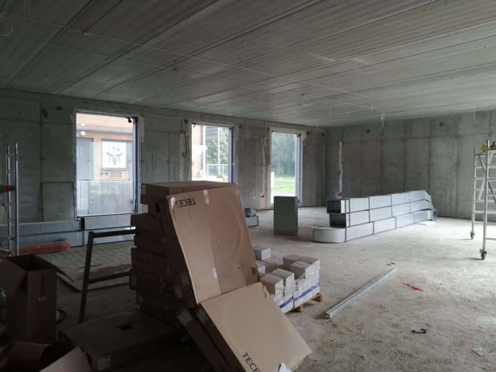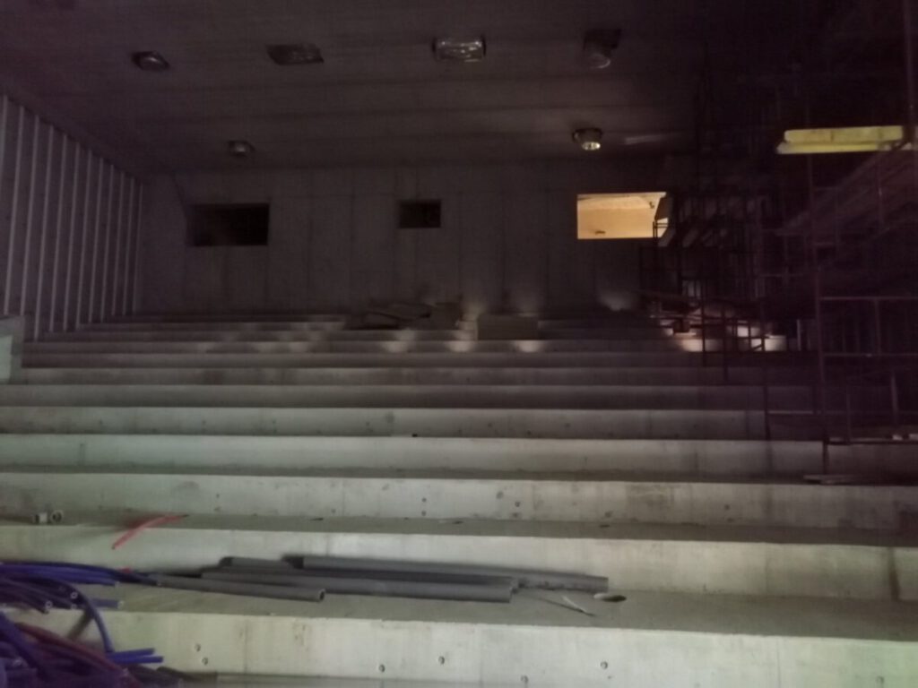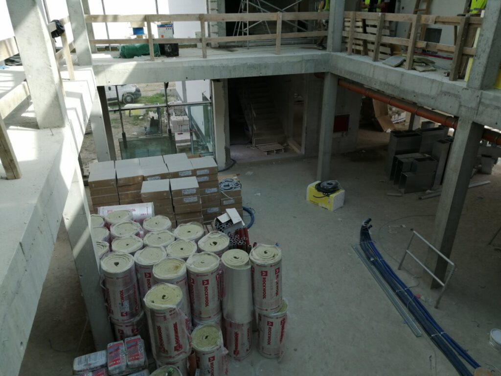 Obecnie, prace są na zaawansowanym etapie. W budynku zamontowano już stolarkę okienną, instalację c.o., instalację elektryczną i wykonana została wentylacja. W części pomieszczeń, w których było to możliwe, wykonane zostały tynki, a w pozostałych pomieszczeniach zostaną one położone po wykonaniu niezbędnego wygłuszenia.