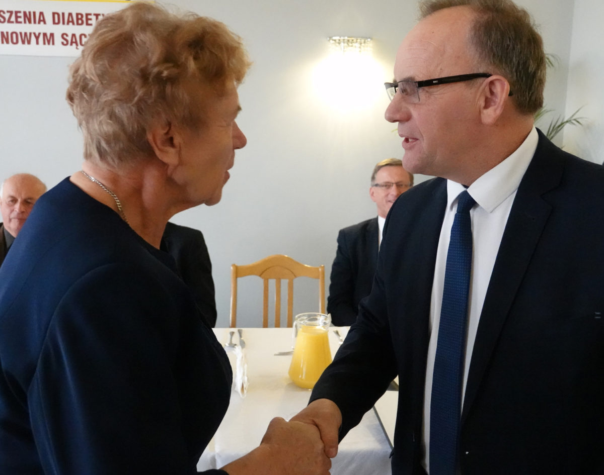 – W ten sposób dziękujemy za wspieranie chorych na cukrzycę i prowadzenie edukacji diabetologicznej wśród mieszkańców Sądecczyzny – mówił wicestarosta Antoni Koszyk. – Cukrzyca jest chorobą podstępną, która przez wiele lat nie daje o sobie znać, niszcząc w tym czasie organizm. Dlatego tak ważne są regularne badania i dbanie o siebie. Dziękuję, że Państwo informujecie mieszkańców Powiatu Nowosądeckiego o zagrożeniach i propagujecie zdrowy styl życia.