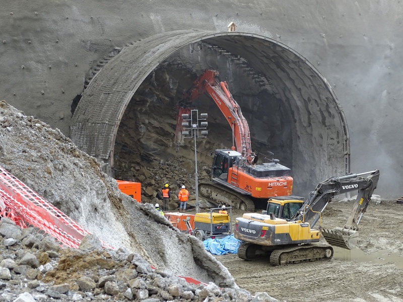 Wykonywanie robót bez przerw i postojów, przez 24 godziny na dobę wiąże się z występowaniem w górze naprężeń i odkształceń. Będą one na bieżąco monitorowane. Cały proces drążenia i zabezpieczania wyrobiska składał się będzie z kilku etapów. Ze względu na budowę geologiczną drążenie nie będzie wykonywane całym przekrojem tunelu, aby nie osłabić górotworu. Zastosowane zostaną: młoty hydrauliczne zamontowane na maszynie typu koparka, dziobaki, wiertła, materiały wybuchowe, głowice skrawające, w zależności od twardości skał. W zależności od odkształceń górotworu i związanych z tym naprężeń na bieżąco będzie dopasowany typ zabezpieczeń drążonego otworu : wstępna obudowa z betonu zbrojonego, natryskowego (torket), a w przypadku słabszej części górotworu dodatkowo wzmacniana przy pomocy gwoździ i kotew.