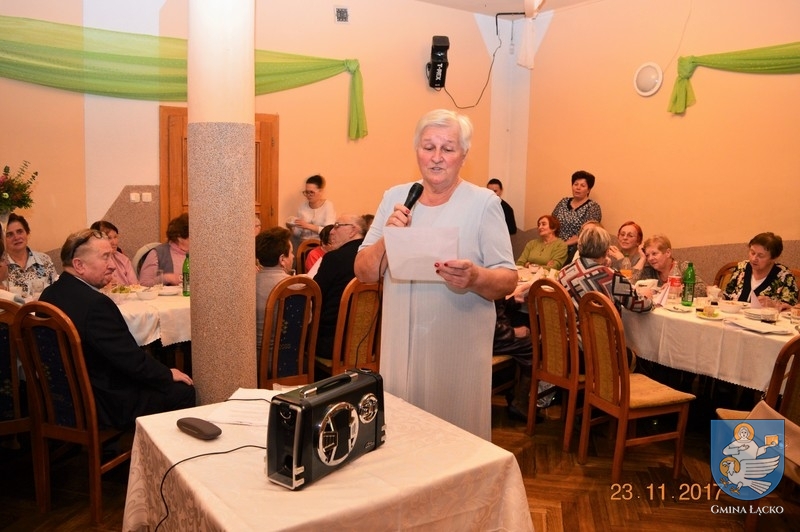 W dniu 23.11.2017 roku w restauracji „ Pod Jabłonią” w ramach projektu socjalnego „Aktywny senior 60+” realizowanego przez Gminę Łącku odbyło się uroczyste spotkanie uczestników projektu. Uroczystość łączyła dwie okoliczności „Dzień seniora” obchodzony 14 listopada oraz przypadające na dzień 30 listopada „Andrzejki”.