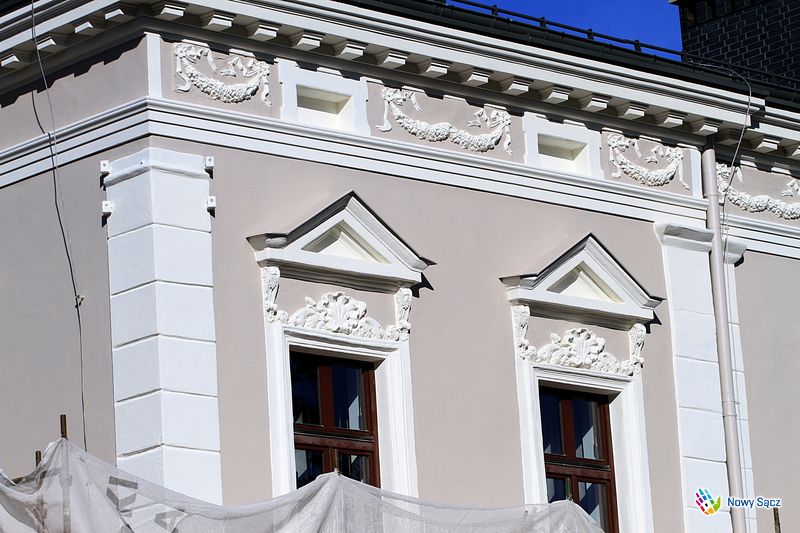 Dobiega końca pierwszy etap remontu elewacji nowosądeckiego Pałacu Młodzieży. Specjaliści wykonują prace wykończeniowe. Z zaawansowaniem robót zapoznał się wczoraj (7 września) zastępca prezydenta Nowego Sącza Jerzy Gwiżdż.