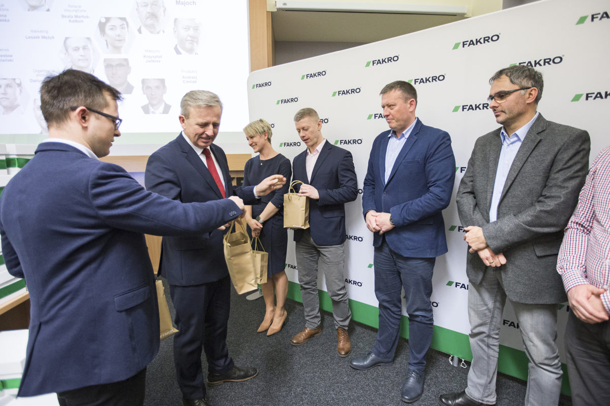 Kolejnym elementem uroczystości było nagrodzenie dziewięciu tegorocznych Ambasadorów marki FAKRO w kategorii Pracownik. Grono Ambasadorów powiększa się z każdym rokiem. Po trzech edycjach FAKRO ma już 33 ambasadorów. Cieszymy się, że pracownicy doceniają swoich kolegówi koleżanki, ponieważ to oni zgłaszają ich do programu. Dziękujemy wszystkim zgłaszającym, a laureatom gratulujemy. Ambasadorzy – jesteśmy z Was dumni – komentuje Joanna Rumin, specjalista ds. PR, koordynator programu. Celem programu ambasadorskiego jest wyróżnienie pracowników, którzy cechują się szlachetną, godną naśladowania postawą, są zaangażowani w życie firmy, gotowi do współpracy, otwarci na nowe wyzwania, promują firmę na zewnątrz oraz wyróżniają się wysoką kulturą osobistą.