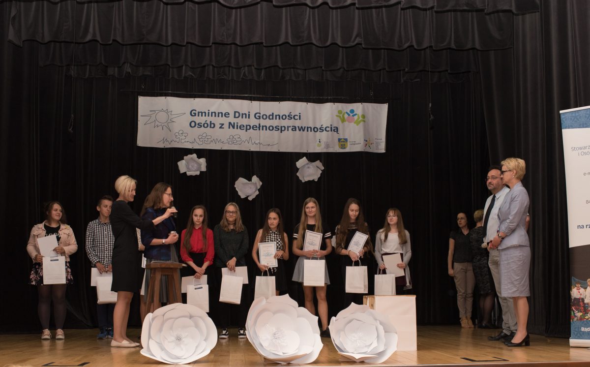 8 maja przedstawieniem „Niewiele potrzeba” w wykonaniu podopiecznych WTZ rozpoczęto pierwszy dzień obchodów Gminnych Dni Godności Osób z Niepełnosprawnością. Występ zachwycił uczniów szkół podstawowych, którzy razem ze swoimi nauczycielami brawami na stojąco nagrodzili grę aktorską. Dzieci ze szkół podstawowych wzięły udział w teście na znajomość bajki terapeutycznej „Czarodziejka”, traktującej o osobach z autyzmem. Zapoznanie się z tą bajką było warunkiem uczestnictwa w konkursie plastycznym, zorganizowanym przez Stowarzyszenie „Promyk”. Do konkursu wpłynęło 37 prac ze szkół podstawowych w Brzeznej, Mokrej Wsi, Rogach, Olszanie, Stadłach, Długołęce-Świerkli. Olszance, Podegrodziu i Gostwicy. Komisja konkursowa w składzie Komisja konkursowa w składzie – Teresa Cabała, Jacek Kula, i Szczepan Owsianka zdecydowała, że wyróżnienia otrzymali Emilia Marcinek ze Szkoły Podstawowej w Brzeznej, za pracę „Zabawa w parku”, Szymon Lorek ze Szkoły Podstawowej w Stadłach, za pracę „Układanie wzorków pod dębem”, oraz Amelia Turek ze Szkoły Podstawowej w Podegrodziu, za pracę „Zabawa z patykami i żołędziami”. I miejsce przyznano Mikołajowi Kołaciakowi ze Szkoły Podstawowej w Brzeznej, za pracę „Spotkanie z czarodziejką”, II miejsce – Adam Rams ze Szkoły Podstawowej w Olszanie, za pracę „Czarodziejka”, III miejsce zajął Mariusz Remiasz ze Szkoły Podstawowej w Brzeznej, za pracę „Mała czarodziejka”. Po ogłoszeniu wyników konkursu plastycznego razem z chórem „Wiolino” ze Szkoły Podstawowej w Podegrodziu wspólnie zaśpiewano piosenkę „Jesteśmy tu, jesteśmy teraz…, nasz wspólny dzień, wspólny los rozświetla życia sens. Świat nasz w tęczy tkwi, kolorów wiele w nim, jeśli ja i ty umiemy razem być….”