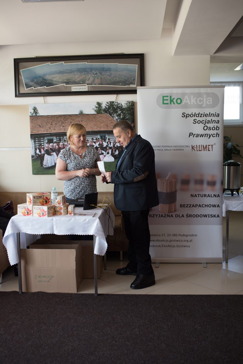 Kolejnym punktem programu była projekcja filmu „Gotowi do pracy” w którym zaprezentowany został udział uczestników WTZ w praktykach w instytucjach na terenie gminy: Spółdzielni Socjalnej „EkoAkcja” w Gostwicy, Sklepie „Groszek” w Gostwicy, Gminnej Bibliotece w Podegrodziu oraz w Gminnym Żłobku w Podegrodziu. Praktyki realizowane są w ramach rehabilitacji zawodowej i przygotowują uczestników do podjęcia pracy. Pozostali uczestnicy, którzy nie biorą udziału w praktykach przygotowują się do nich w Warsztacie pod opieką terapeutów. W trakcie uroczystości można było kupić podpałkę ekologiczną ze Spółdzielni Socjalnej EkoAkcja w Gostwicy, zatrudniającej osoby z niepełnosprawnością.
