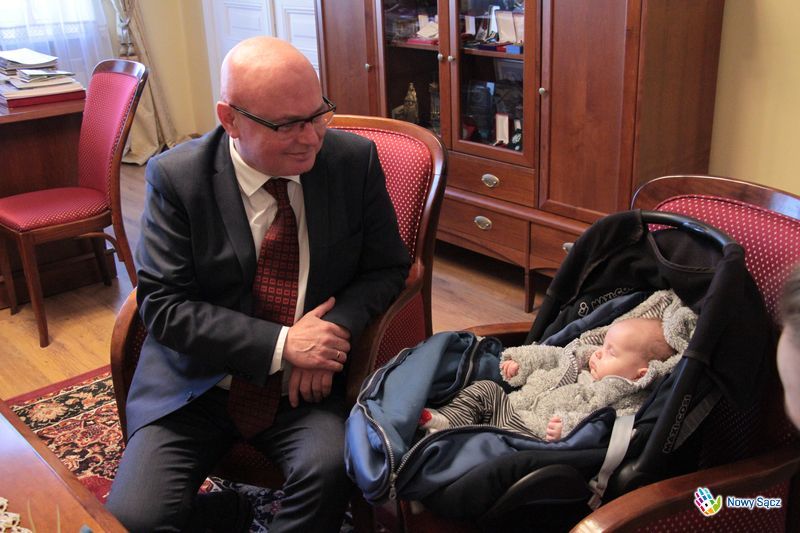Prezydent Ryszard Nowak przyjął dzisiaj w swoim gabinecie wyjątkowych gości – dwumiesięczną Julię Sandecję wraz z rodzicami Małgorzatą i Miłoszem. Śpiące w nosidełku maleństwo stało się jednym z najbardziej rozpoznawalnych noworodków na Sądecczyźnie, dzięki zamiłowaniu i pasji jej taty.