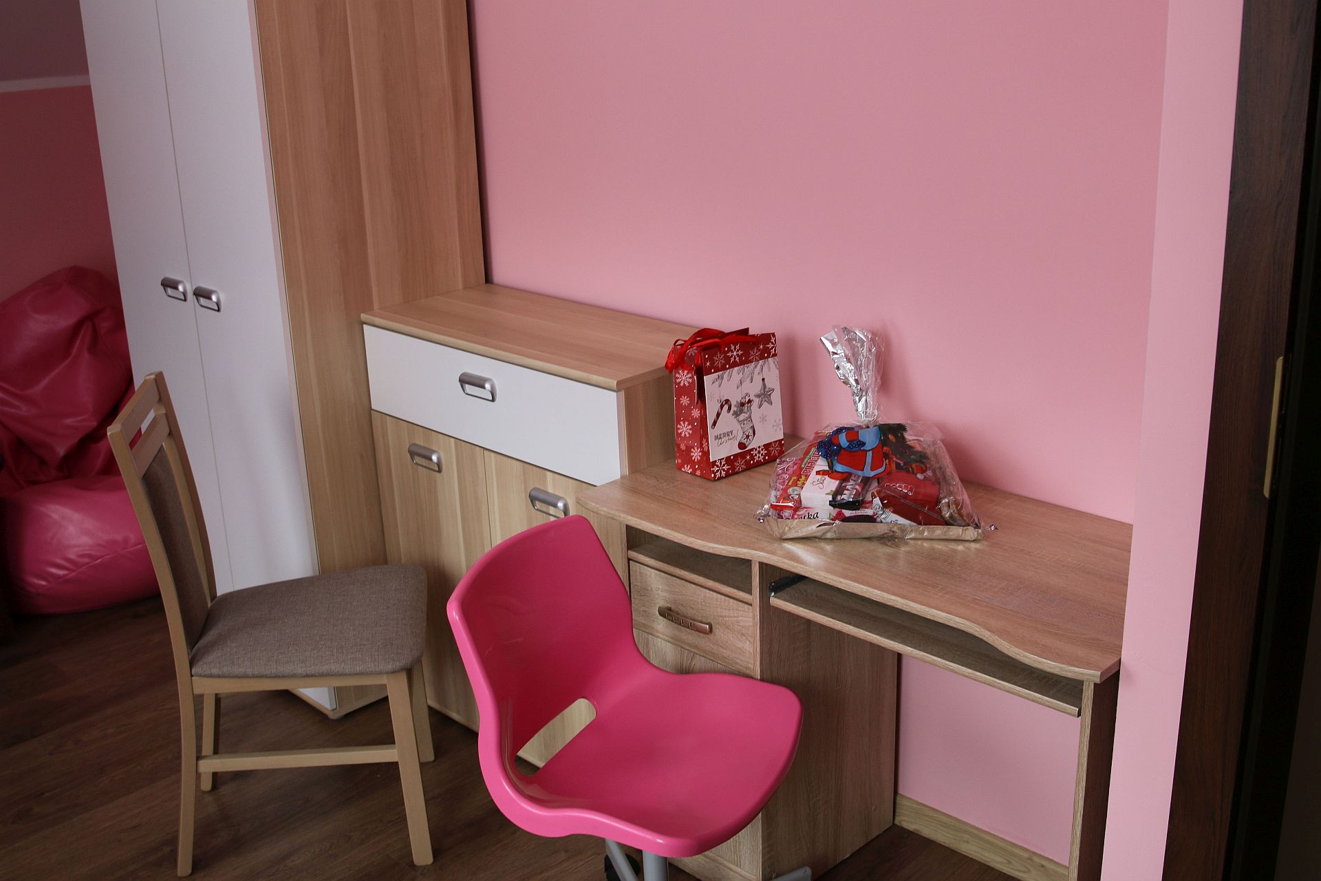 Pani Kinga i jej córki zamieszkają w domu, który na parterze ma salon, kuchnię pokój Pani Kingi i kotłownie. Dziewczynki zaś zamieszkają na piętrze. Dwie są bliźniaczkami, więc dzielić będą pokój wspólnie. Pozostałe będą miały swoje pokoje. W domu są dwie łazienki i niewielki taras.