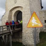 W niedzielę uczestnicy listopadowej wyprawy pokonali odcinek z Piaseczna do Podzamcza oglądając po drodze Okiennik Wielki ( jak sama nazwa wskazuje jest to skałka z oknem, istnieją przypuszczenia, że w średniowieczu była na niej warownia), bunkry z czasów II wojny światowej w Żerkowicach i na Suchym Połciu, rekonstrukcję grodziska na górze Birów ( tylko z zewnątrz ponieważ w listopadzie obiekt jest nieczynny). Odcinek między Karlinem a Podzamczem zapadnie wędrowcom w pamięci również z powodu jego „plażowego” charakteru – piasek miejscami sięgał powyżej kostek. Zwieńczeniem udanej wyprawy było zwiedzanie malowniczych ruin zamku Ogrodzieniec. Do zobaczenia na Szlaku Orlich Gniazd w przyszłym roku!