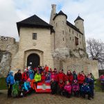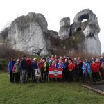 Liczy on ponad 160 kilometrów i prowadzi z Krakowa do Częstochowy. Pełno na nim malowniczych skałek, jaskiń, zabytkowych sanktuariów i przede wszystkim tytułowych orlich gniazd czyli warowni z czasów Kazimierza Wielkiego. Nasze Koło rozpoczęło wędrówkę nim w ubiegłym roku. Wówczas udało się w ciągu trzech dni przejść odcinek z Częstochowy do Bobolic. W tym roku rozpoczęliśmy od zwiedzania zrekonstruowanego zamku w Bobolicach by następnie powędrować przez pełną fantastycznych form skalnych górę Zborów do Morska gdzie w szybko zapadającym listopadowym mroku udało się jeszcze dojrzeć ruiny zamku „Bąkowiec” . Przy latarkach docieramy do Piaseczna gdzie kończy się pierwszy etap tegorocznej jurajskiej wędrówki. Mimo fatalnych prognoz (orkan „Marcin”) pogoda w tym jak i następnym dniu okazała się sprzyjająca i obeszło się bez użycia peleryn i parasoli. Jeszcze raz potwierdziło się, że meteorolodzy to nie saperzy, a na nasze wycieczki warto jechać nawet gdy zapowiadają ulewy, wichury i śnieg.