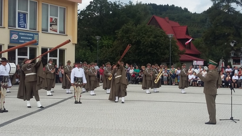 Uroczystości rozpoczęły się w samo południe od pokazu musztry paradnej w wykonaniu Orkiestry Reprezentacyjnej Straży Granicznej z Nowego Sącza pod dyrekcją ppłk. dr. hab. Stanisława Strączka. To wyjątkowe widowisko zostało nagrodzone gromkimi owacjami przez licznie zgromadzoną na łąckim Rynku publiczność.