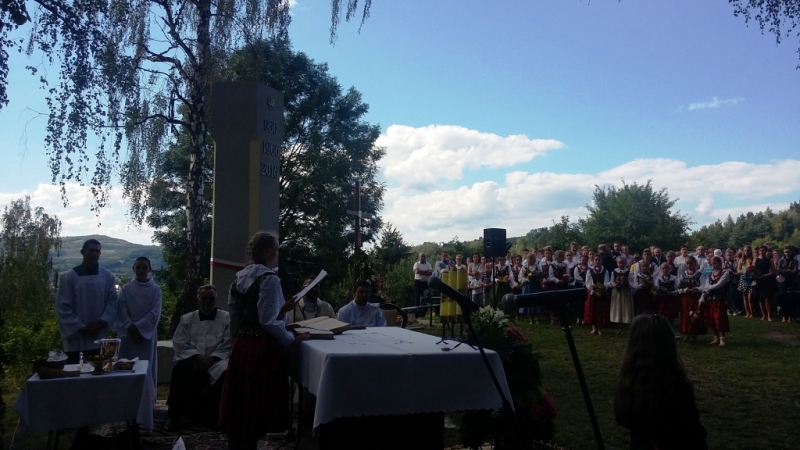 Popołudniowe uroczystości jubileuszowe na Górze Zyndrama w Maszkowicach rozpoczęły się uroczystą Mszą Św. w oprawie muzycznej przygotowanej przez dzieci i młodzież z Maszkowic pod opieką p. Piotra Matusiewicza. W swojej homilii ks. Szymon Pietryka nawiązał do znaczenia Chrztu Polski w historii naszego kraju oraz do roli chrześcijańskich korzeni w naszej kulturze. Nie mogło zabraknąć poświęcenia bukietów i wianków z kwiatów, owoców i ziół z okazji uroczystości Matki Bożej Zielnej.