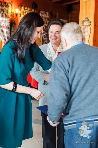 Dostojnym Jubilatom odznaczenia wręczał Wójt Gminy Łącko Jan Dziedzina, który życzył im dużo zdrowia i kolejnych Jubileuszy. Z kolei okolicznościowe Listy Gratulacyjne małżonkowie otrzymali z rąk Przewodniczącej Rady Gminy Łącko Bernadetty Wąchały-Gawełek. Prócz tego pary odbierały kwiaty i upominki od kierownika Urzędu Stanu Cywilnego w Łącku Beaty Faron. Następnie został wzniesiony toast, po którym odśpiewano huczne „sto lat”.