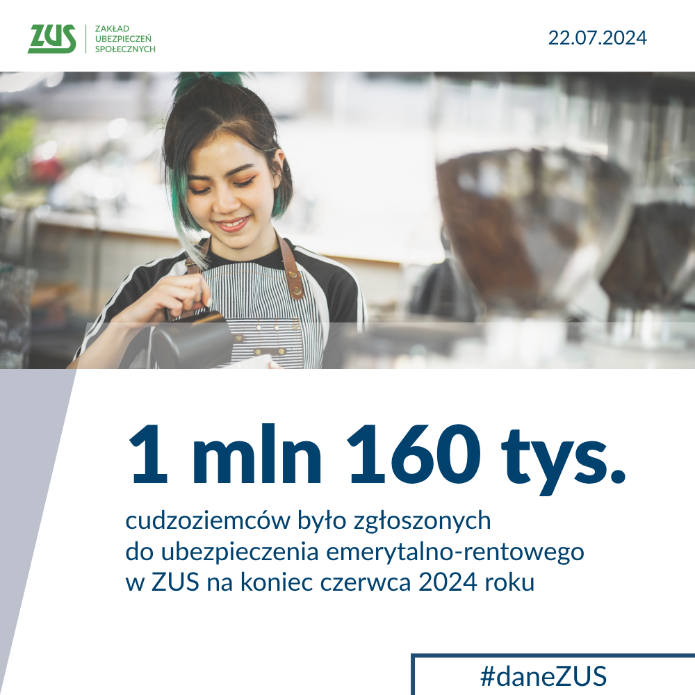 W Polsce liczba cudzoziemców zgłoszonych do ubezpieczeń emerytalno-rentowych w ZUS przekroczyła 1 mln 160 tys.