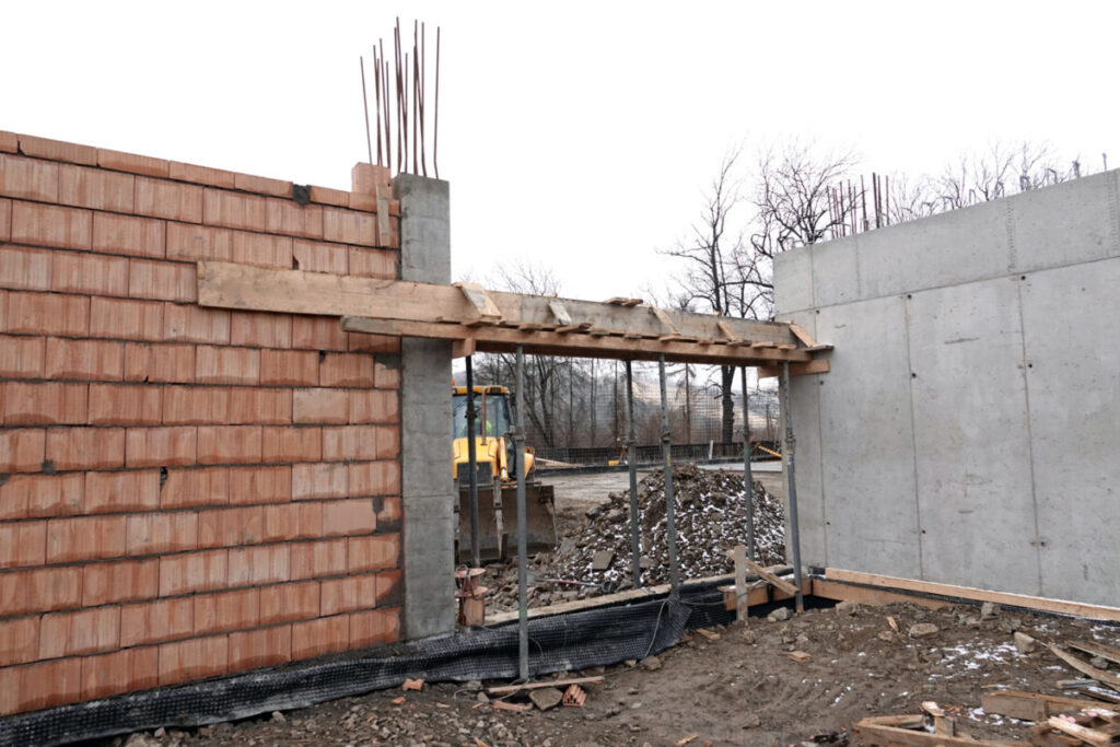Widać postępy prac przy budowie hali sportowej ze strzelnicą przy Zespole Szkół w Marcinkowicach.