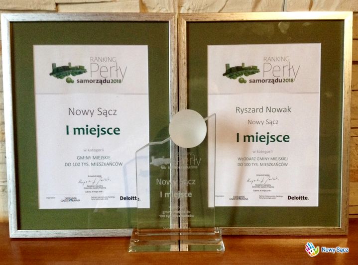 Liderem rankingu w kategorii gmin miejskich do 100 tysięcy mieszkańców zostało Miasto Nowy Sącz, zdobywając I miejsce. Perła Samorządu trafiła do Prezydenta Miasta Nowego Sącza Ryszarda Nowaka, który został najlepszym włodarzem.