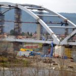 – Od strony dzielnicy Helena montaż łuków jest ukończony i trwają prace związane z demontażem podpór tymczasowych pod łukami. Po wykonaniu wstępnego sprężenia obiektu i przystąpieniu do montażu odciągów, czyli lin, zostanie rozpoczęty montaż deskowania płyty pomostu oraz zbrojenia i jej betonowania. Podobna sytuacja będzie występować od strony zamku, po zakończeniu montażu łuków – mówi dyrektor Miejskiego Zarządu Dróg w Nowym Sączu Grzegorz Mirek i dodaje:- Od strony dzielnicy Helena prowadzone są prace przy budowie ronda. Ponadto na ukończeniu są nasypy do mostu, wykonywanie murków oporowych. Obecnie układane są krawężniki, wykonywana stabilizacja oraz podbudowy. Po ich zakończeniu przystąpimy do wykonywania warstw bitumicznych na całym odcinku od ulicy Krakowskiej, poprzez rondo, aż do obiektu mostowego. Ponadto w najbliższych dniach będą prowadzone prace związane z zakończeniem nasypów do mostu od strony zamku oraz dokończone zostanie układanie warstw bitumicznych do mostu.