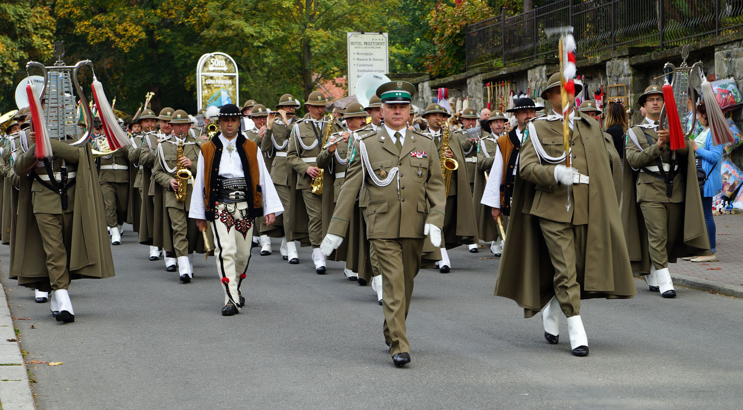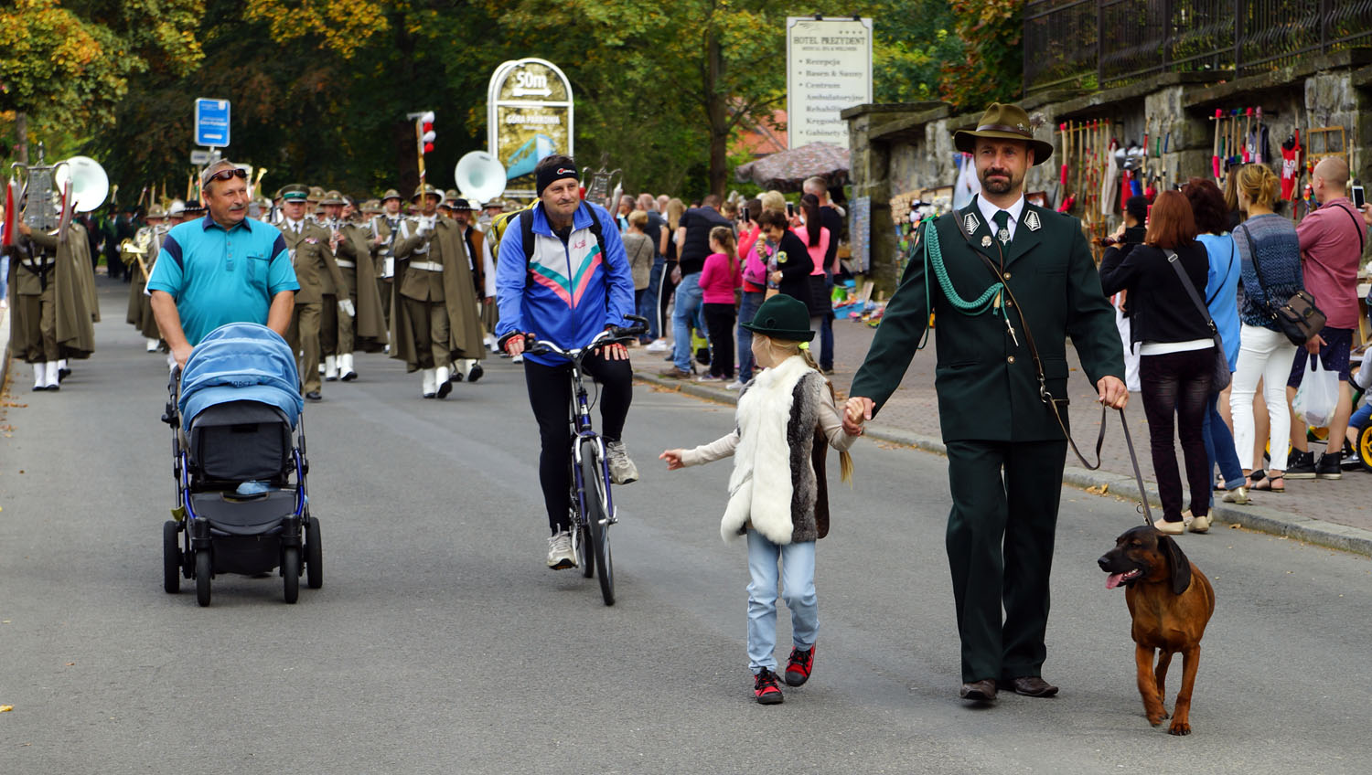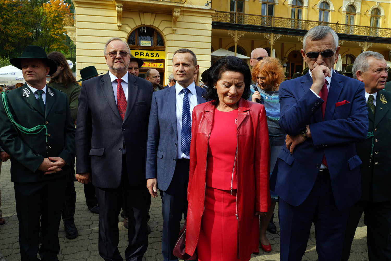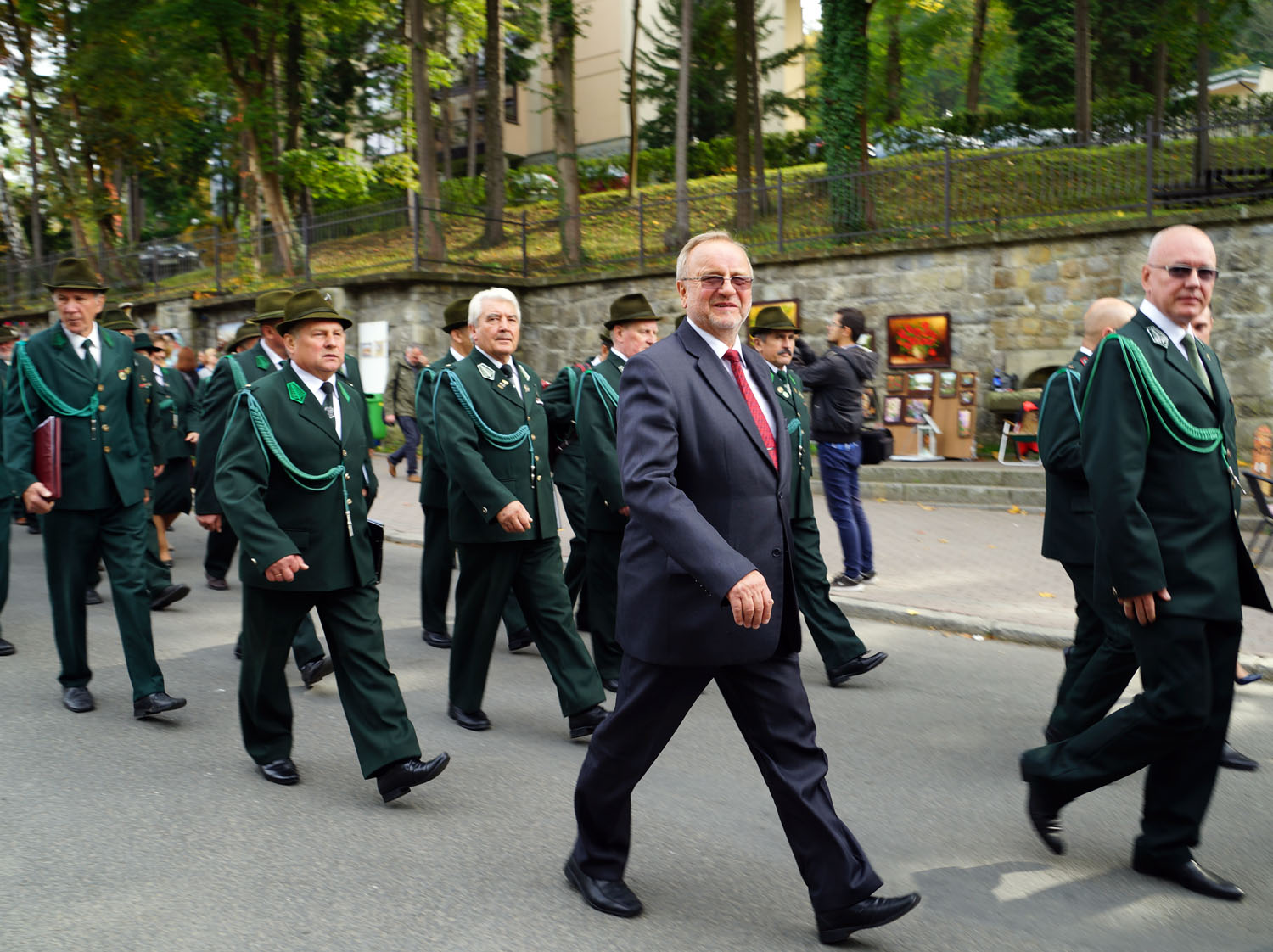 Po uroczystej mszy św. odprawionej w kościele Wniebowzięcia Najświętszej Maryi Panny w Krynicy-Zdroju poczty sztandarowe, przy akompaniamencie Orkiestry Reprezentacyjnej Straży Granicznej w Nowym Sączu przemaszerowały na deptak. Myśliwym towarzyszyli parlamentarzyści Ziemi Sądeckiej oraz członkowie organizacji łowieckich. Wszystkich witał burmistrz Krynicy-Zdroju Dariusz Reśko.