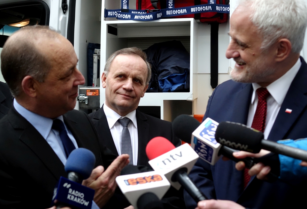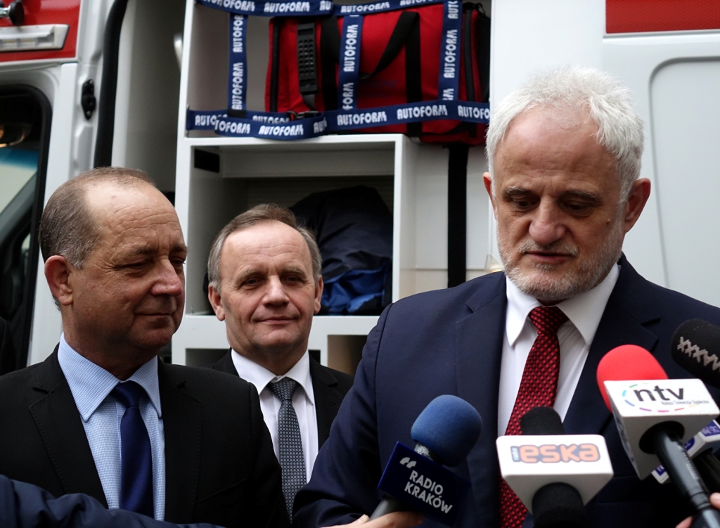 – Ta karetka jest wyposażona w najnowocześniejszy sprzęt – mówił wojewoda Józef Pilch. – Cieszę się, że zakupiliśmy ją razem ze starostą. Będziemy się starać, aby w Małopolsce rozmieścić podstacje w taki sposób, żeby karetka dojeżdżała do chorego w ciągu dziewięciu minut.