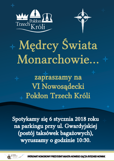 Już po raz szósty ulicami Nowego Sącza przejdzie barwny orszak pod nazwą Pokłon Trzech Króli (6 stycznia). Przedsięwzięcie objął honorowym patronatem prezydent Nowego Sącza Ryszard Nowak. W związku z inscenizacją wystąpią okresowe utrudnienia w ruchu.