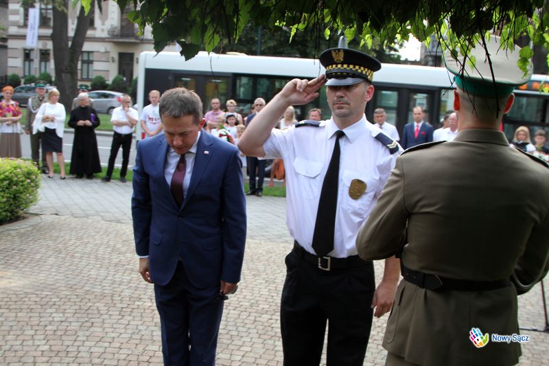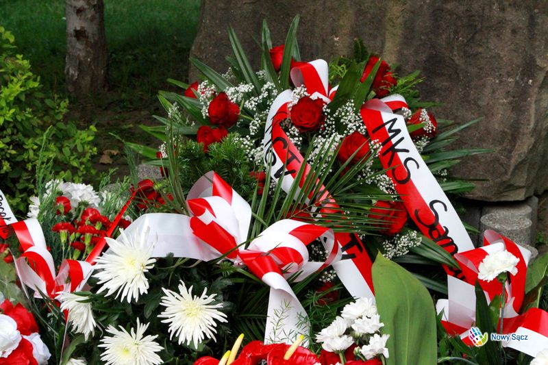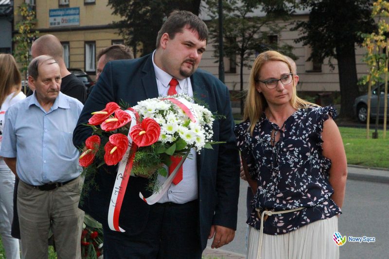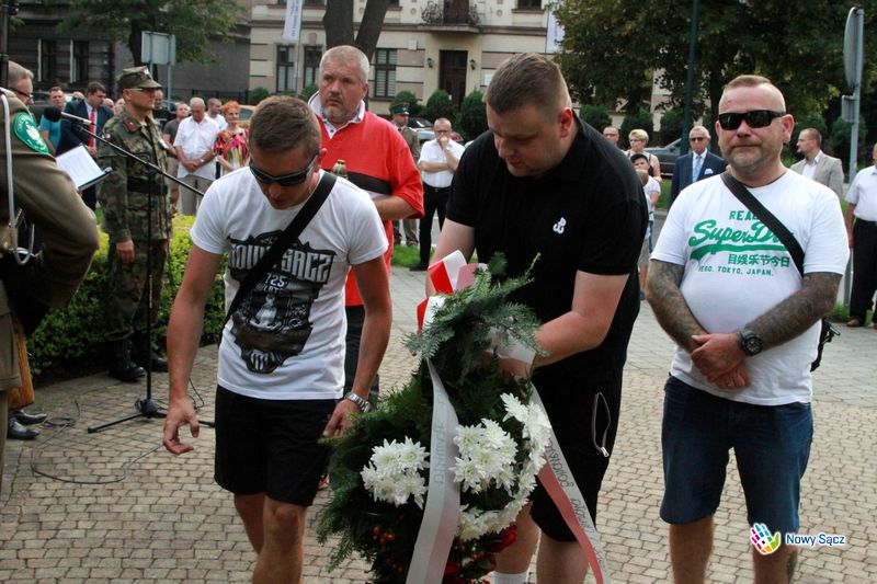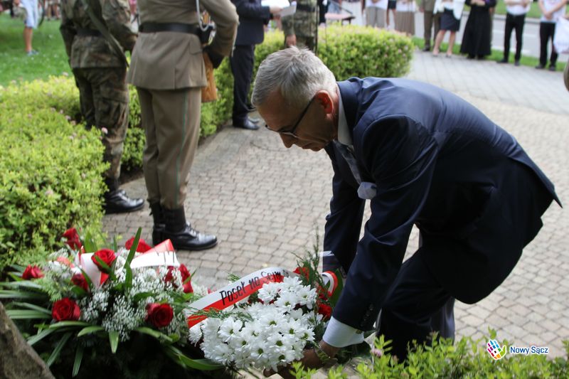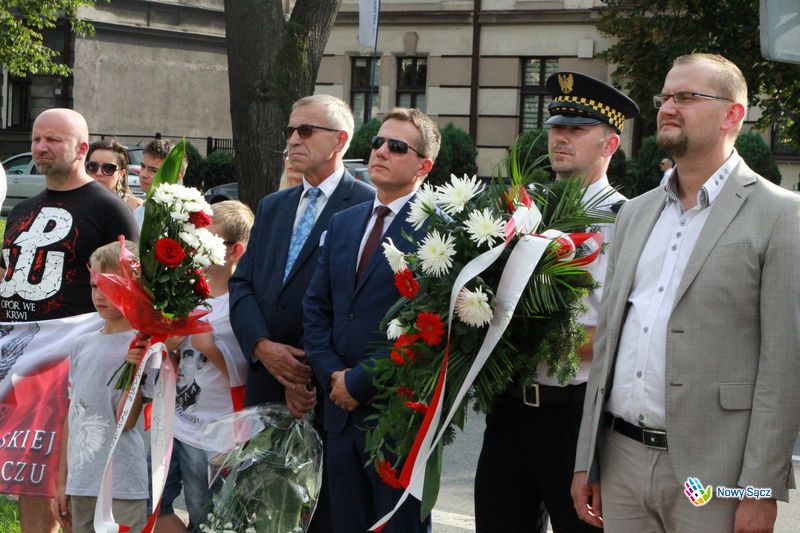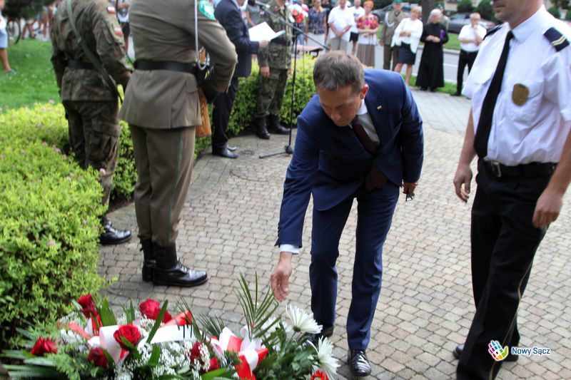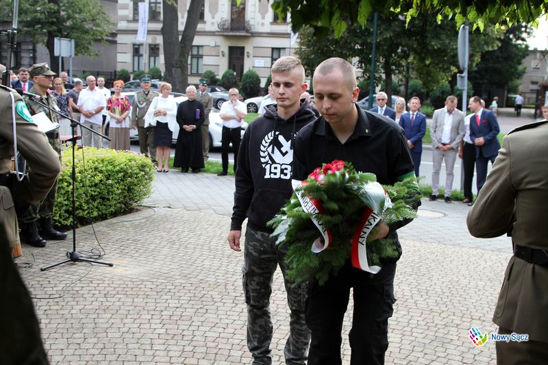 Symboliczne wiązanki kwiatów złożyli mieszkańcy, przedstawiciele parlamentu, władz miasta, służb mundurowych, a także członkowie miejskich struktur Prawa i Sprawiedliwości, sądeckiego oddziału Klubu Gazety Polskiej, kibice klubu MKS Sandecja oraz delegacje środowisk patriotycznych. Na uroczystościach nie zabrakło również sądeckich Strzelców.