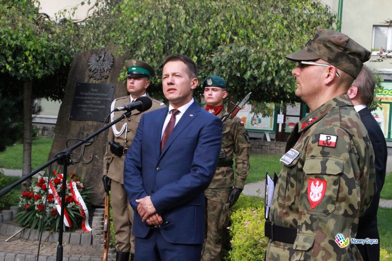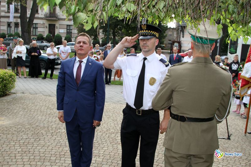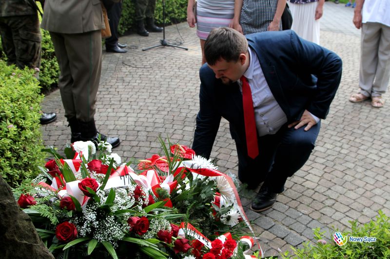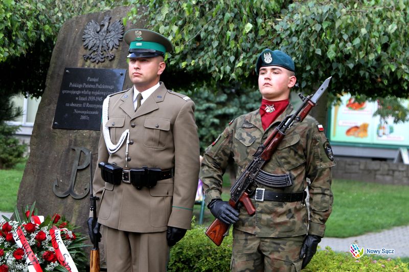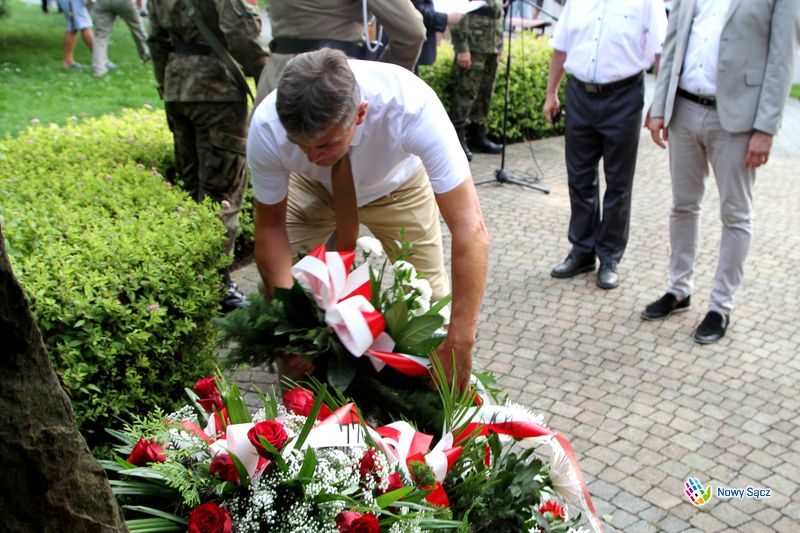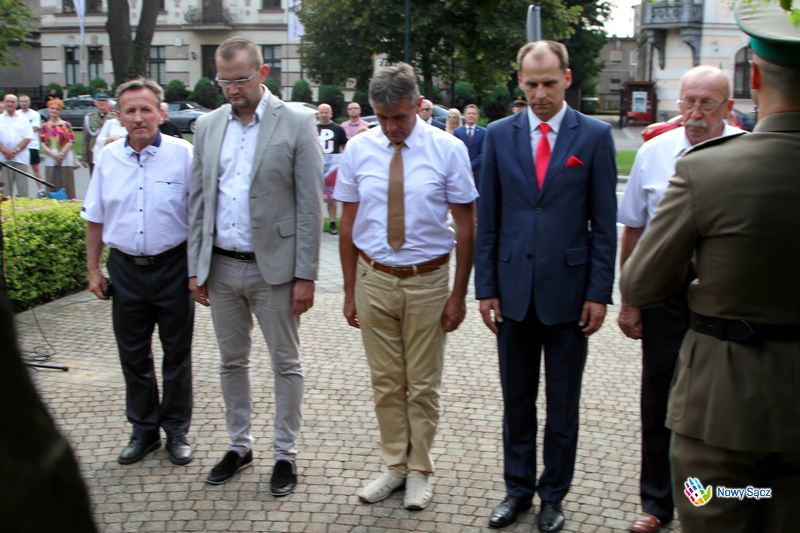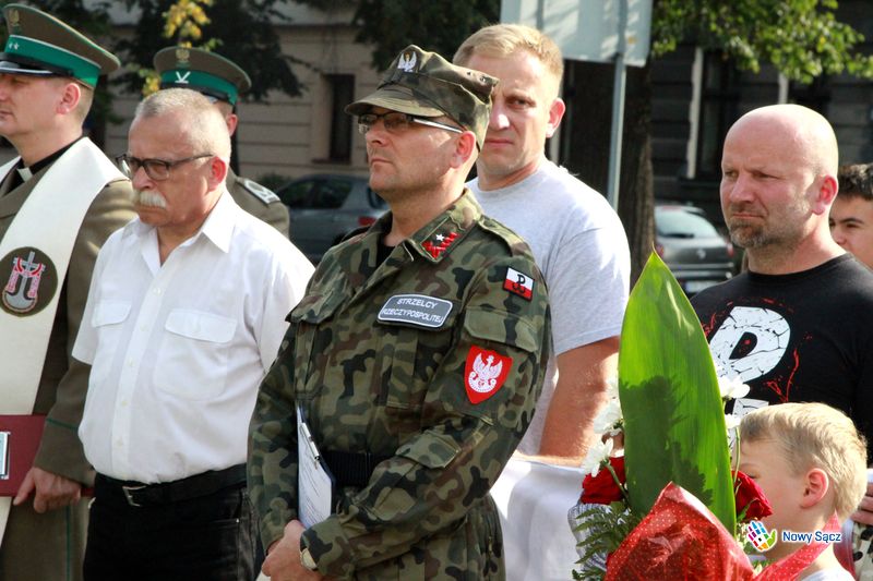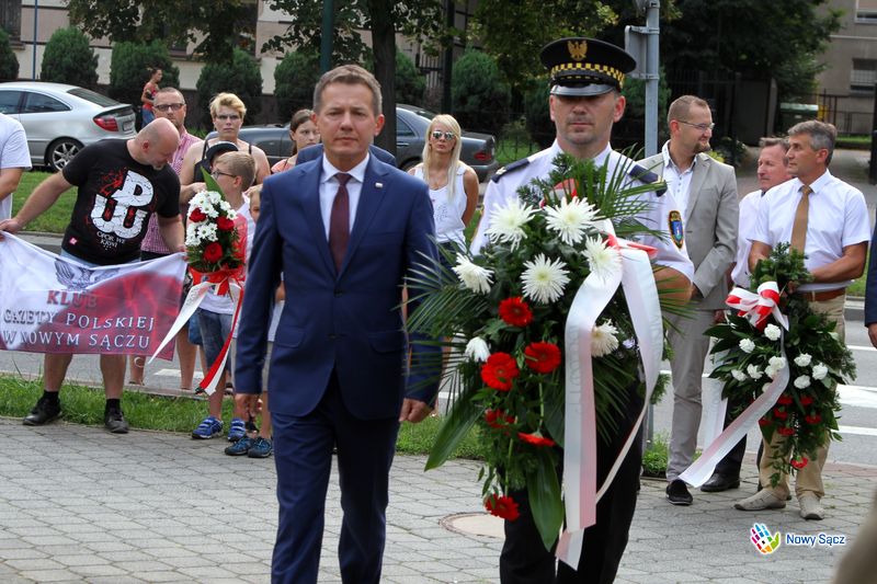 Symboliczne wiązanki kwiatów złożyli mieszkańcy, przedstawiciele parlamentu, władz miasta, służb mundurowych, a także członkowie miejskich struktur Prawa i Sprawiedliwości, sądeckiego oddziału Klubu Gazety Polskiej, kibice klubu MKS Sandecja oraz delegacje środowisk patriotycznych. Na uroczystościach nie zabrakło również sądeckich Strzelców.